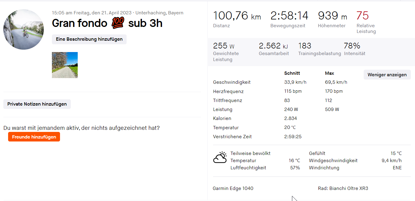 204W AVG, 223NW, 33,9 Schnitt, also das Pacing war zwar besser, weil weniger Leistung aber der Speed noch höher