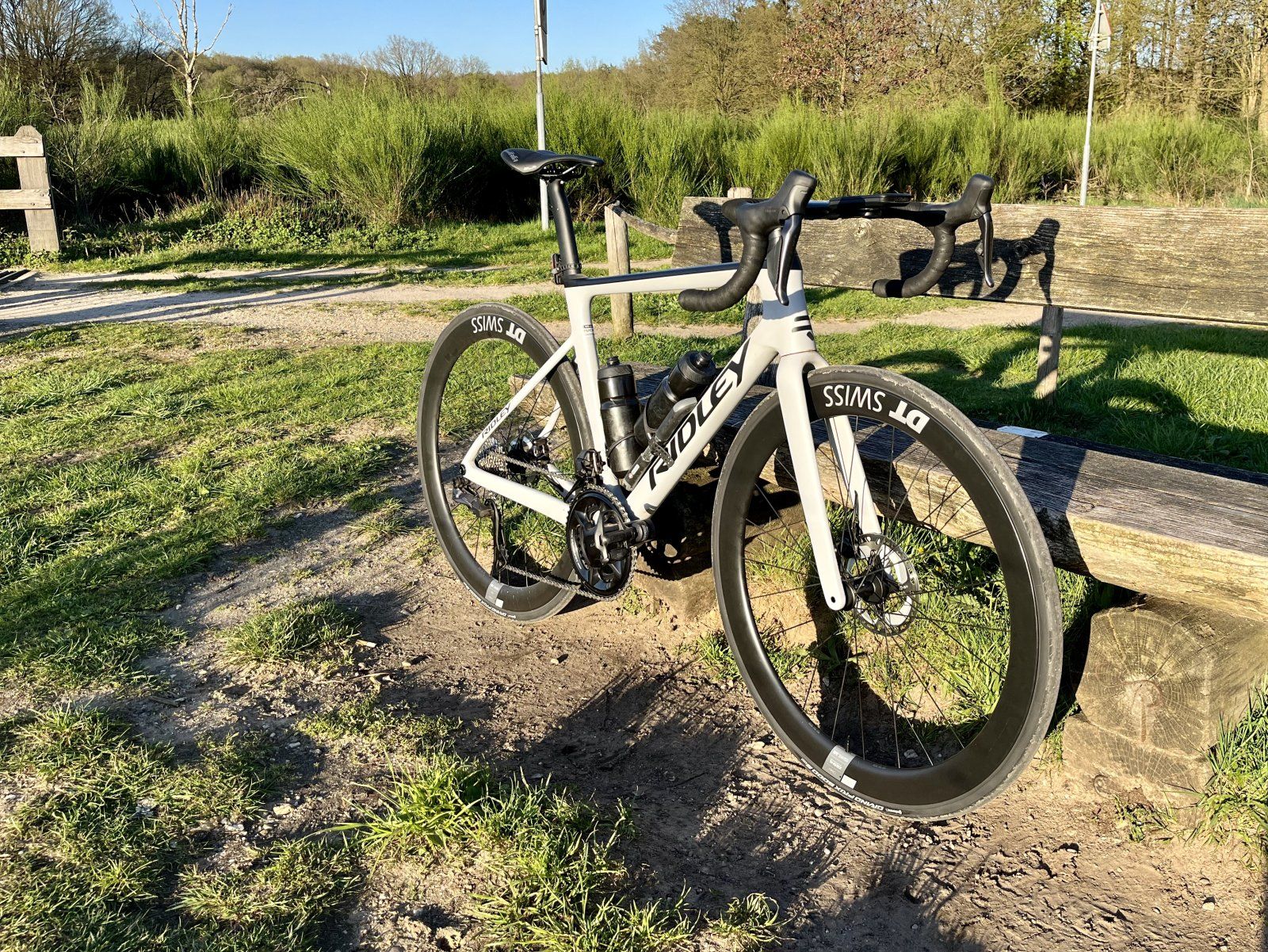 Mit 176/84cm habe ich gemäß Größenrechner auf der Website von Ridley Rahmengröße M gewählt mit Wechsel auf ein kürzeres Cockpit (100 statt 110mm). Da ich von einem sehr kompakten Rahmen komme (Canyon Aeroad 2018 in S) fühlt sich das Falcn schon noch etwas lang an aber nicht unangenehm. S empfand ich beim Probesitzen aber doch zu ähnlich zum Aeroad, weswegen ich zu M gegriffen habe. Sattelüberhöhung derzeit noch 7cm bei ungekürztem Gabelschaft.