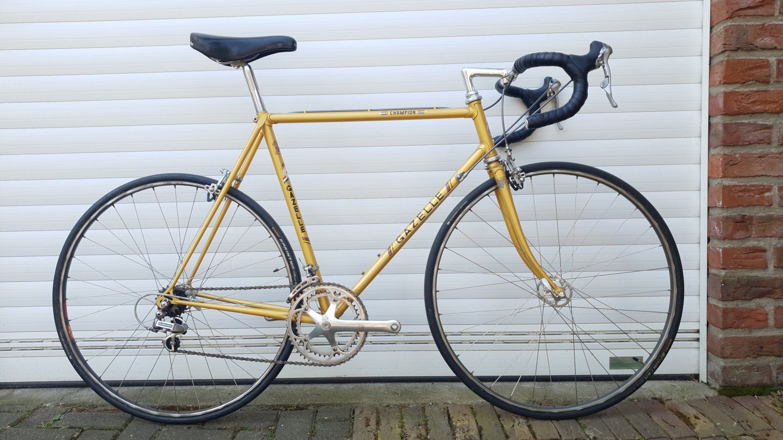Sehr schick und in traumhaftem Lackzustand, oder?753er Gazelle in Goldgelb, wiegt ohne Pedale mit STIs 9,4kg. Ich werde das wohl als leichtes aber dennoch alltagstaugliches Rad aufbauen.