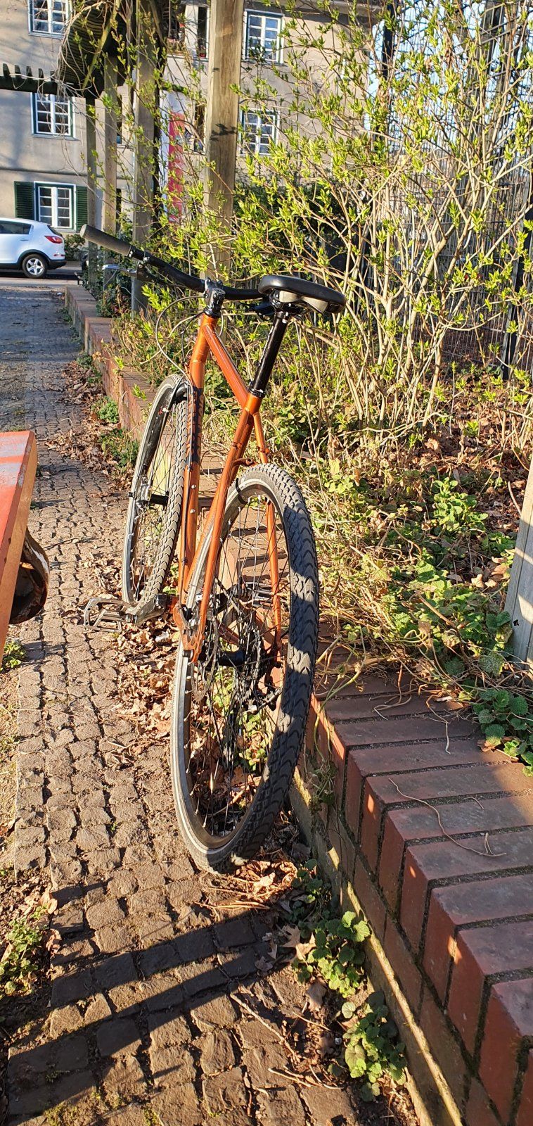 So, die ersten Touren sind gemacht und ich muss sagen, das Ding fährt nicht übel. 11 Kilo sind zwar ne Ansage, aber ich muss keine Rennen gewinnen. Deutlich komfortabler als mein Klein Quantum Mitte der ‘90er (aber das war ja auch Straßen-RR pur). An der Vorbaulänge muss ich noch etwas herumspielen. Aktuell 90mm, vielleicht versuch ich’s mal mit 70mm. Bin das Hängen in den Griffen nicht mehr gewohnt. Einen MTB-Lenker hält man halt anders. Was noch: Schultern und Lendenmuskulatur erinnerten mich nach einer 120 km-Tour daran, mal wieder zu stretchen und zu dehnen. Bin sogar schon ein paar Trails runtergezittert - war aber kein Heldenauftritt. Mit dem MTB hätt ich die Wurzeln vernascht, auf dem Gravel dachte ich mir: mal schauen, welche Linie das Rad nimmt. 😂