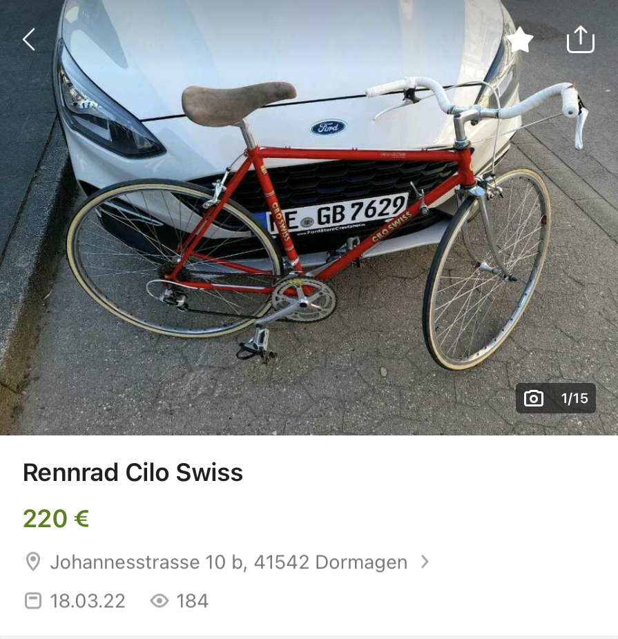 Oh, entschuldige. Verwechselung. Ich meinte @vintagecycles4ever.Ich kann nicht folgen? Welches Rad möchtest du von mir mitnehmen?![]()