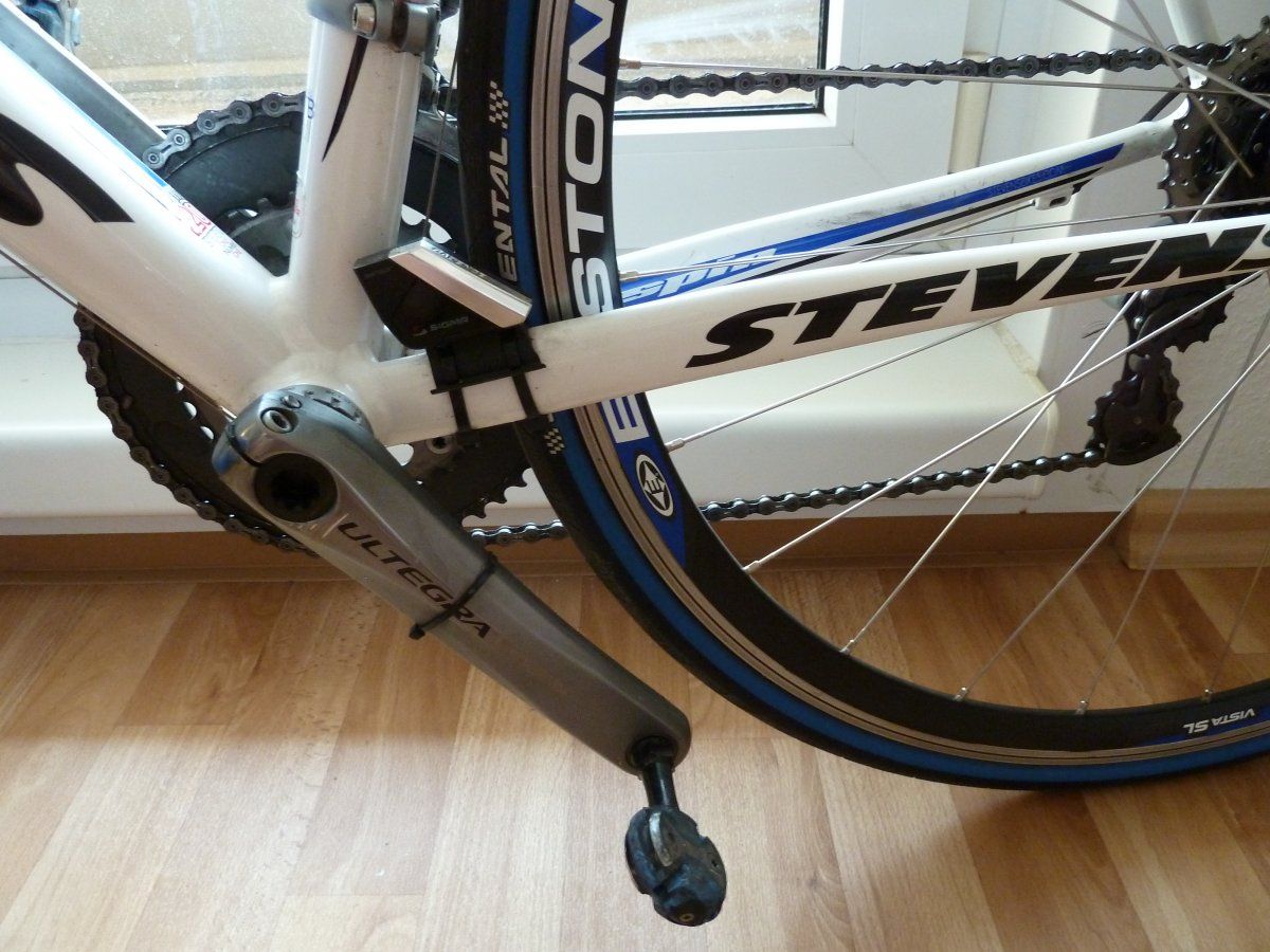 Ich habe den TF-Sensor an der linken Kettenstrebe möglichst nah am Tretlager nach unten zeigend montiert. (Fand ich so am unauffälligsten). Die TF Messung funktioniert aber nur (grünes LED blinkt) wenn der Magnet mit ca. 2-3 mm Abstand am Sensor vorbeiläuft. Jetzt hab ich eben die Befüchtung, dass beim nächstgrößeren Schlagloch der Sensor sich doch mal bewegt und vom Magnet gekillt bzw. in die Speichen befördert wird.