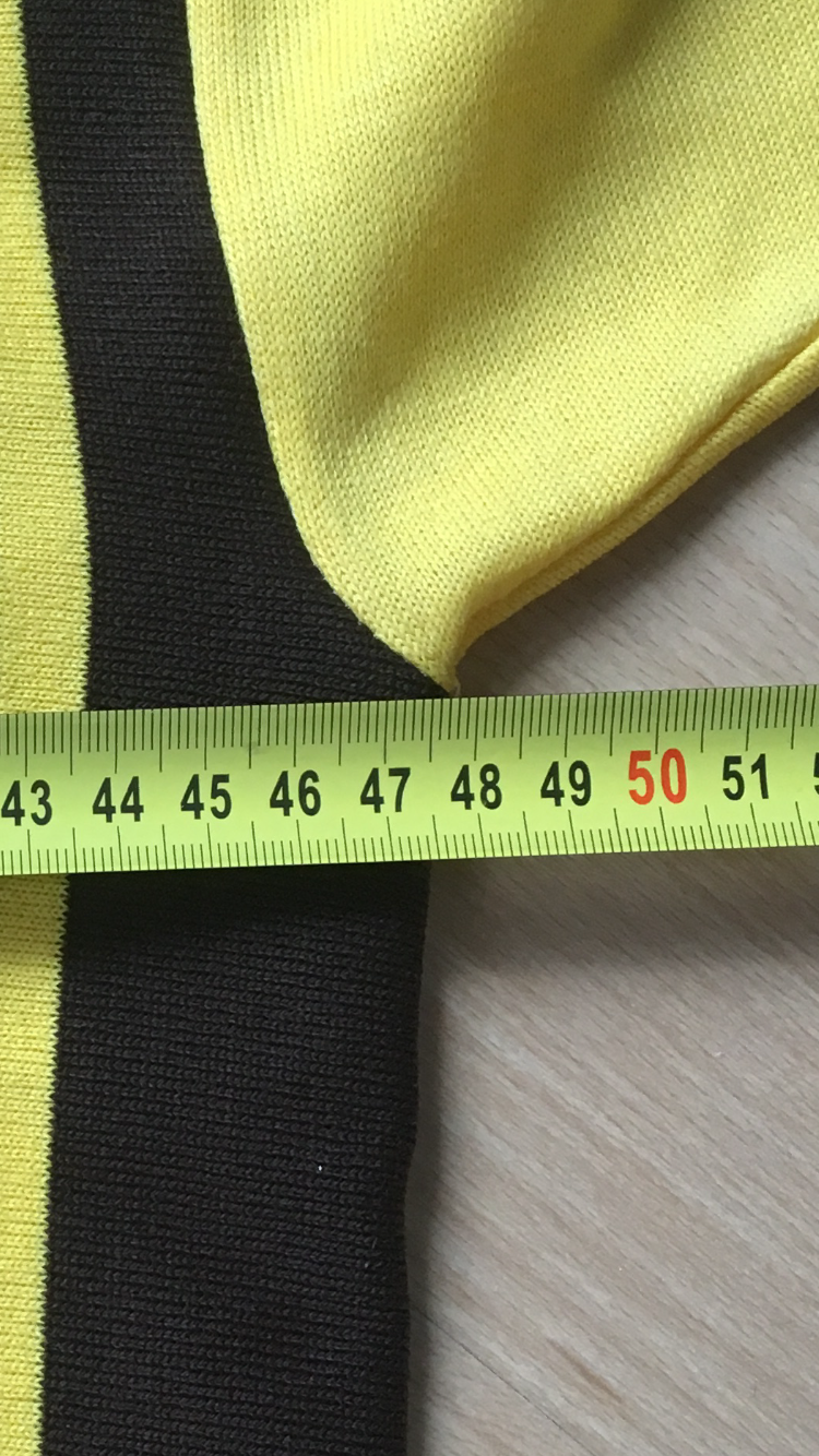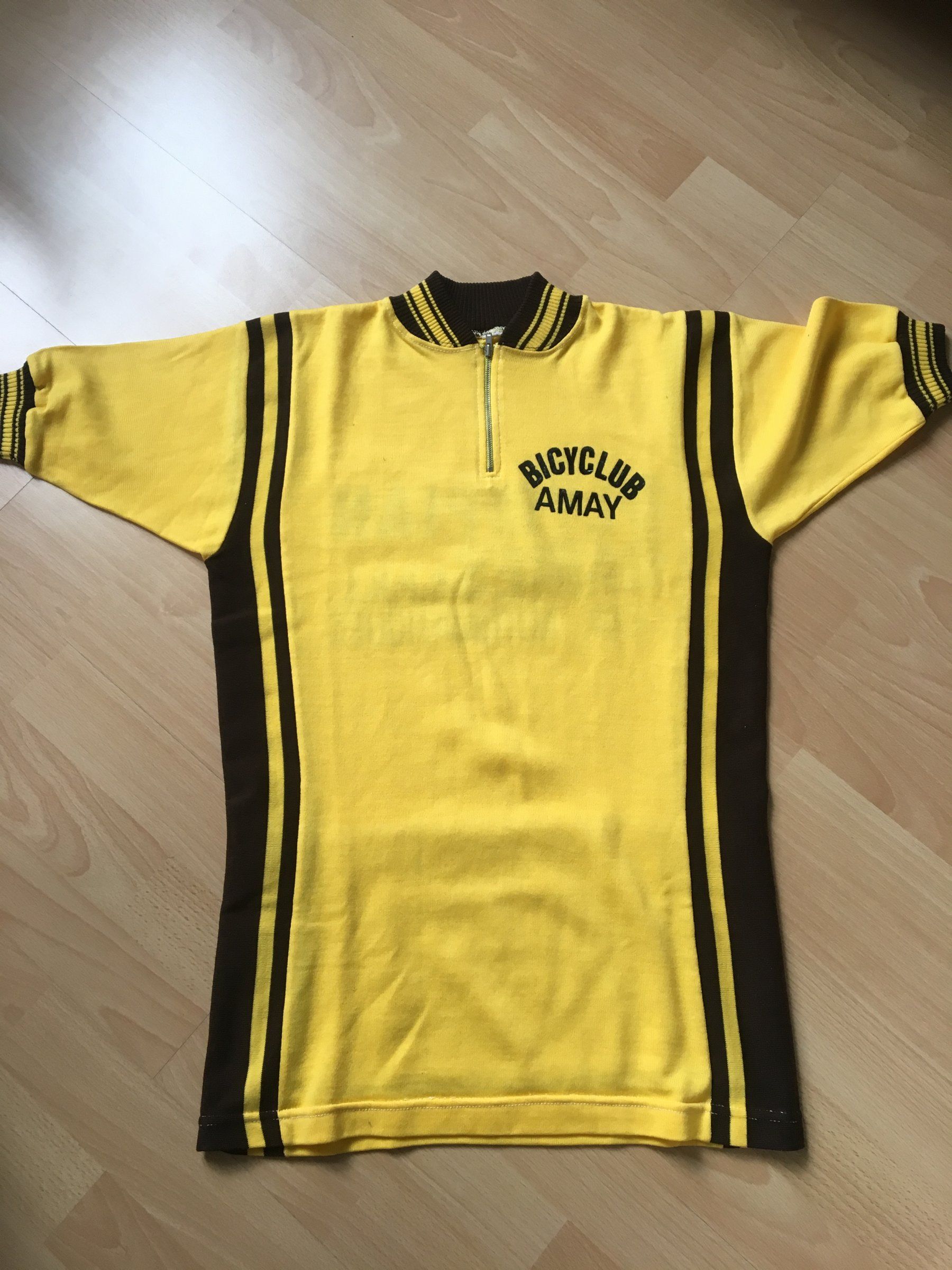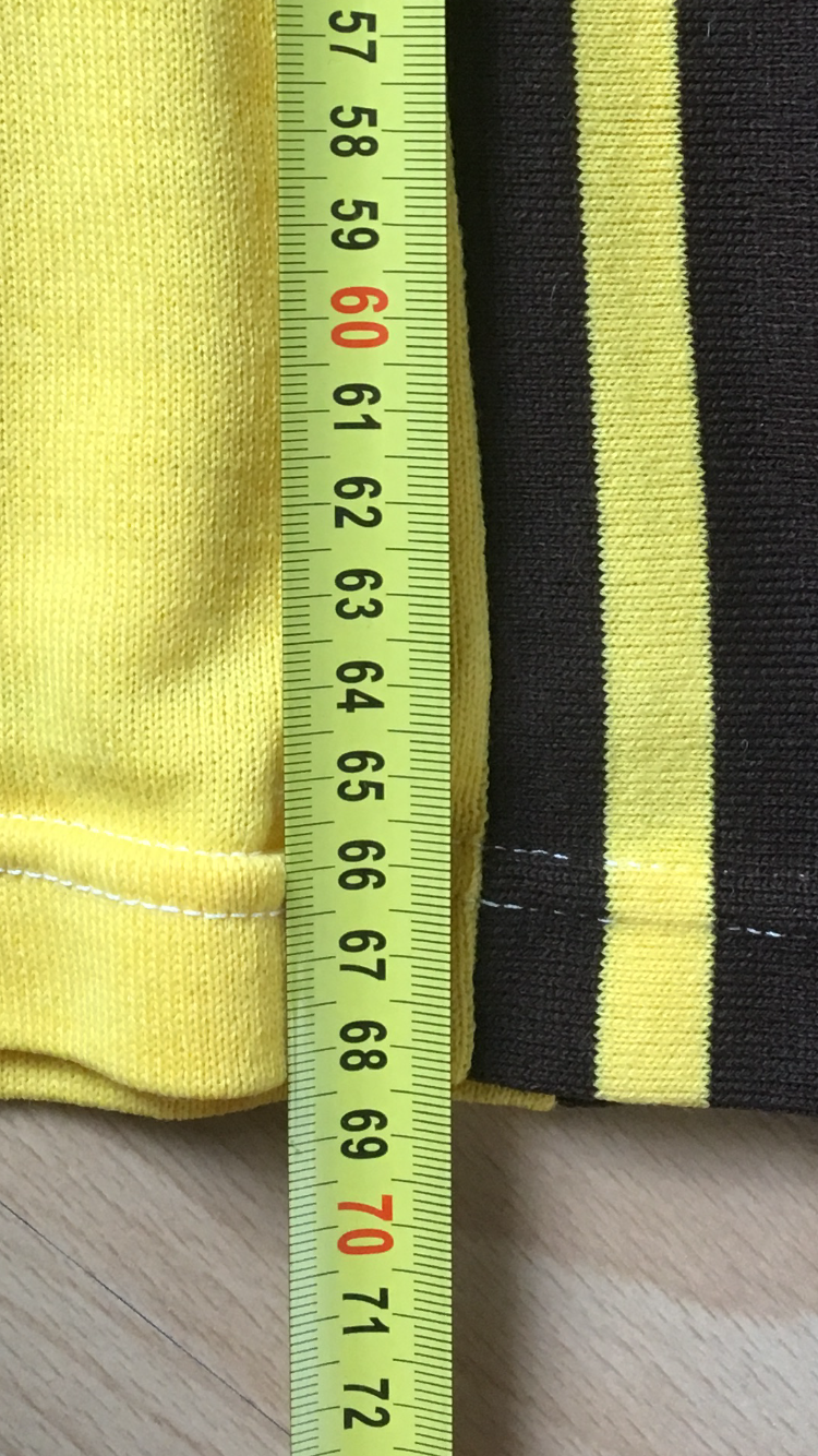 Aus meiner Trikotsammlung gebe ich ein klassisches Trikot in Gelb/Braun ab – wie der aufmerksame Leser festgestellt hat mit französischem Aufdruck.