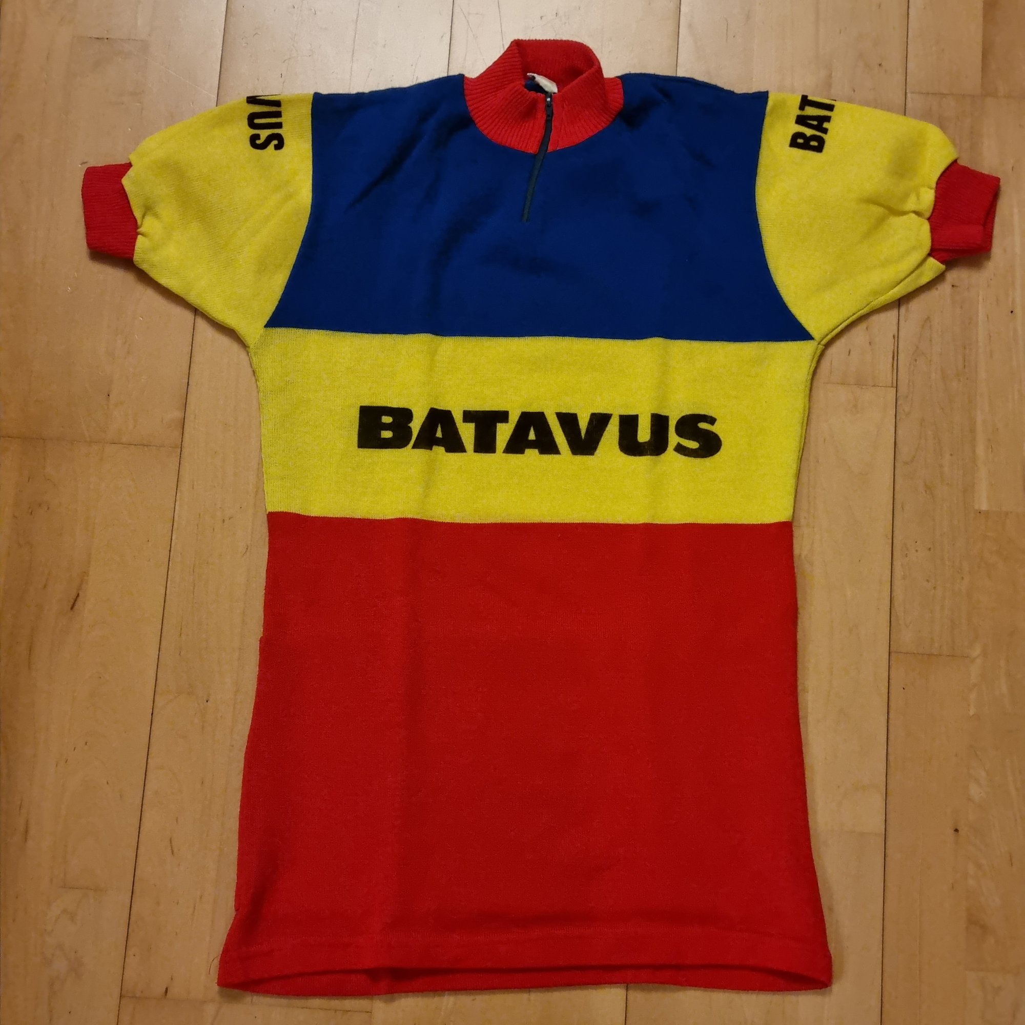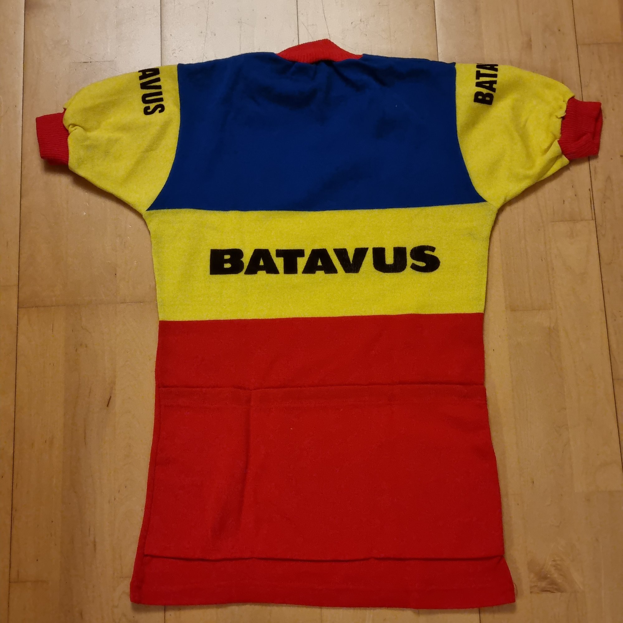 Das Batavus Trikot (Acrylgestrick der 80-er Jahre) passt mir gut mit 187 cm Größe und ~77 kg