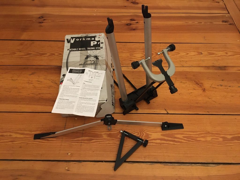 Da wäre zum Ersten ein klappbarer Zentrierständer – Marke Minoura Workman Pro.