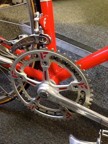 Das Cinelli ist sogar vollgefedert, am Übergang der Sitzstreben ins Sitzrohr ist die zusätzliche Federung fürs Hinterrad zu erahnen. Zu Hintergründen und einem Prototyp gibt Andrea Pesenti hierDas rote Cinelli oben scheint einen gefederten Gabelschaft zu haben !?