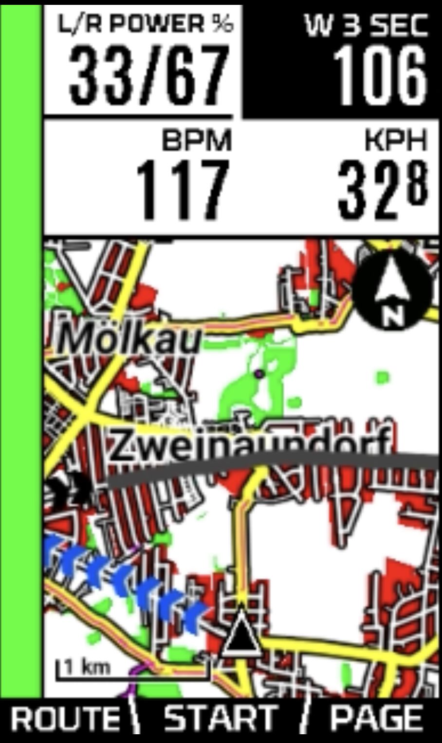Unabhängig von Wegpunkten, hat das Wahoo komplett die "Übersicht" verloren - allerdings bin ich komplett Off-Grid neben der Autobahn gefahren, keine offiziellen Wege, kein Nichts; wo soll das Gerät da auch hinrouten - als ich wieder On-Grid war, hatte ich auch schnell eine korrekte Route auf die Ursprungsroute.