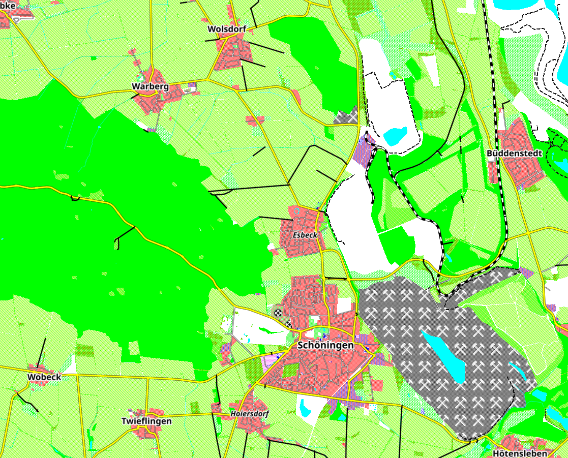 Was genau ist dein Problem hier? Was mir beim Blick in die OSM-Kartendaten auffällt, ist, dass die drei benachbarten Tagebau(-Restlöcher) unterschiedlich getagged sind als Steinbruch, Deponie und Baustelle. Mit meinem Theme würde also nur einer der drei auf der Karte als Steinbruch angezeigt.https://www.openstreetmap.org/way/237118491#map=16/52.1573/10.9923 hier wäre noch einiges drinHILFE
