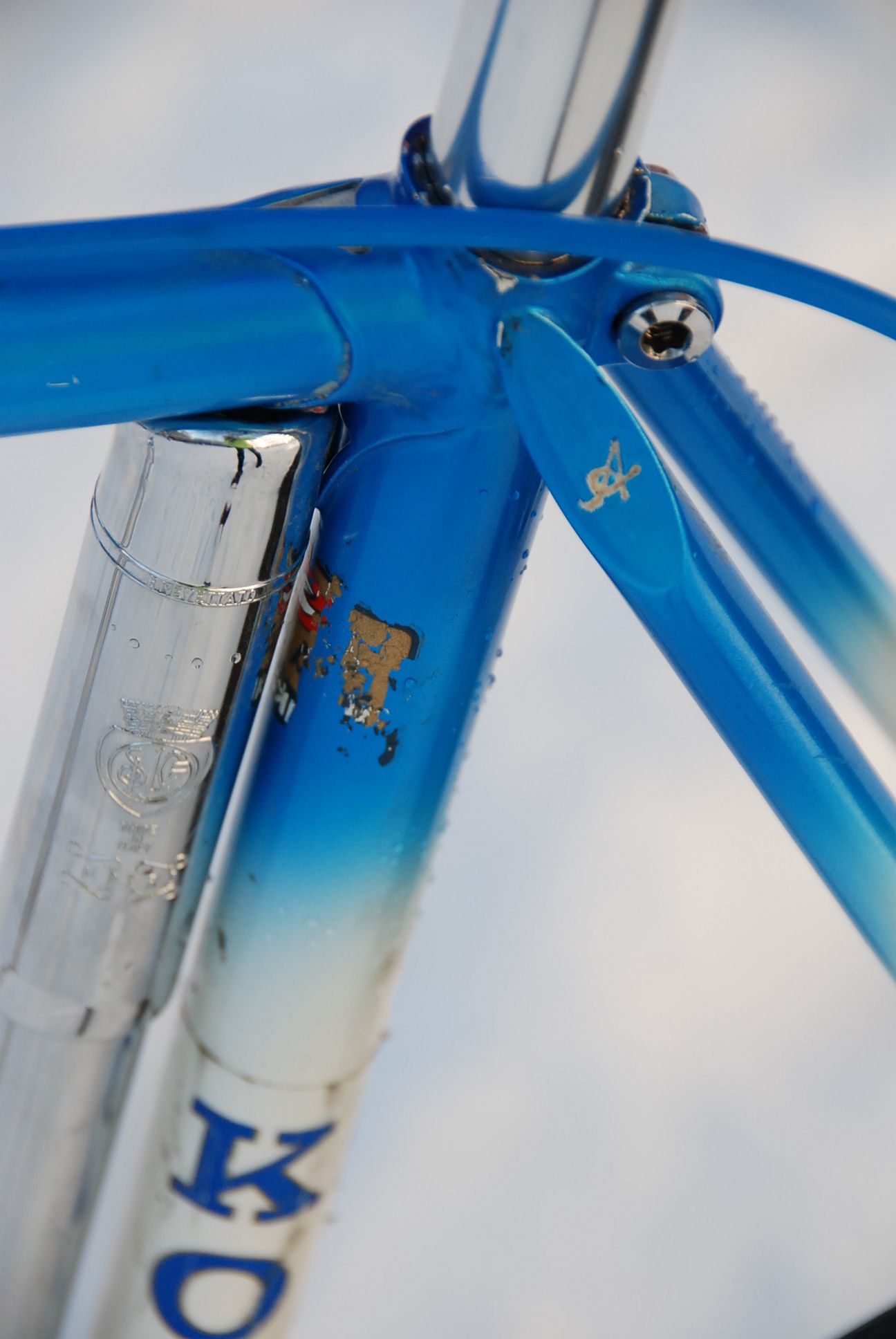 Hallo Kotter experts! I have come across this steel bicycle which I think was made by Albuch Kotter. The BB is Cinelli and has the marking "Albuch". There is a number attachment point which to me suggests it may have been a frame ridden by the Kotter Albuch professional racing team. I am not sure whether the frame has been re-painted or not. The groupset is Shimano 300EX, which surely was not a groupset fit for a professional racing bike? This bicycle fascinates me - any thought and input would be greatly appreciated!