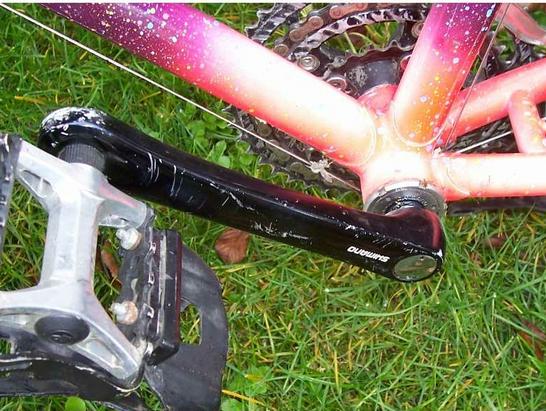 ...also, ich hatte ein Foto ins Forum gestellt als ich das Kotter wieder aufgebaut hatte. Dann hat einer gemeint ich solle doch besser das Blatt um "eins" zur Kurbel drehen, da er das Loch für die Kettenfangschraube gesehen hat und mir zur selbigen geraten, da falls die Kette abspringt sie sich natürlich verhaken kann und das nicht gut ist. Da habe ich heute das Große Blatte um "eins" (mit passender Schraube, die ich zufällig gefunden hatte-also einfach nur eine Schraube die das passende Gewinde hatte) gedreht-bündig mit der Kurbel-so wie es sein soll. Die hat mir dann heute wohl ne Menge Ärger erspart...:)