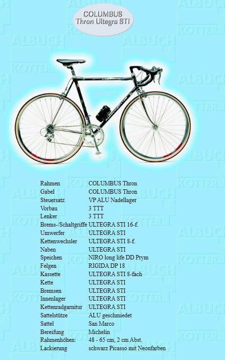 Allerdings war die Internet-Präsentation der Firma eher rudimentär.....unter der Sparte "Rennräder" konnte ich immerhin noch folgende, letzte Modelle von Kotter finden :