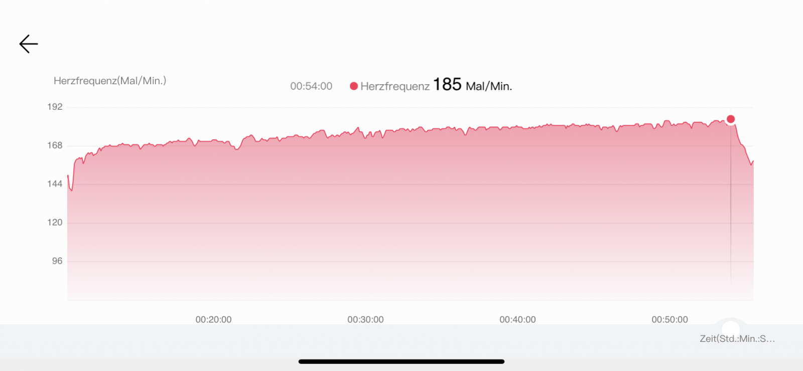 entgegen meiner normal ueblichen 100-105er cadence habe ich es nach 15min mal anders gemacht und bin mit einer 85er weiter gefahren