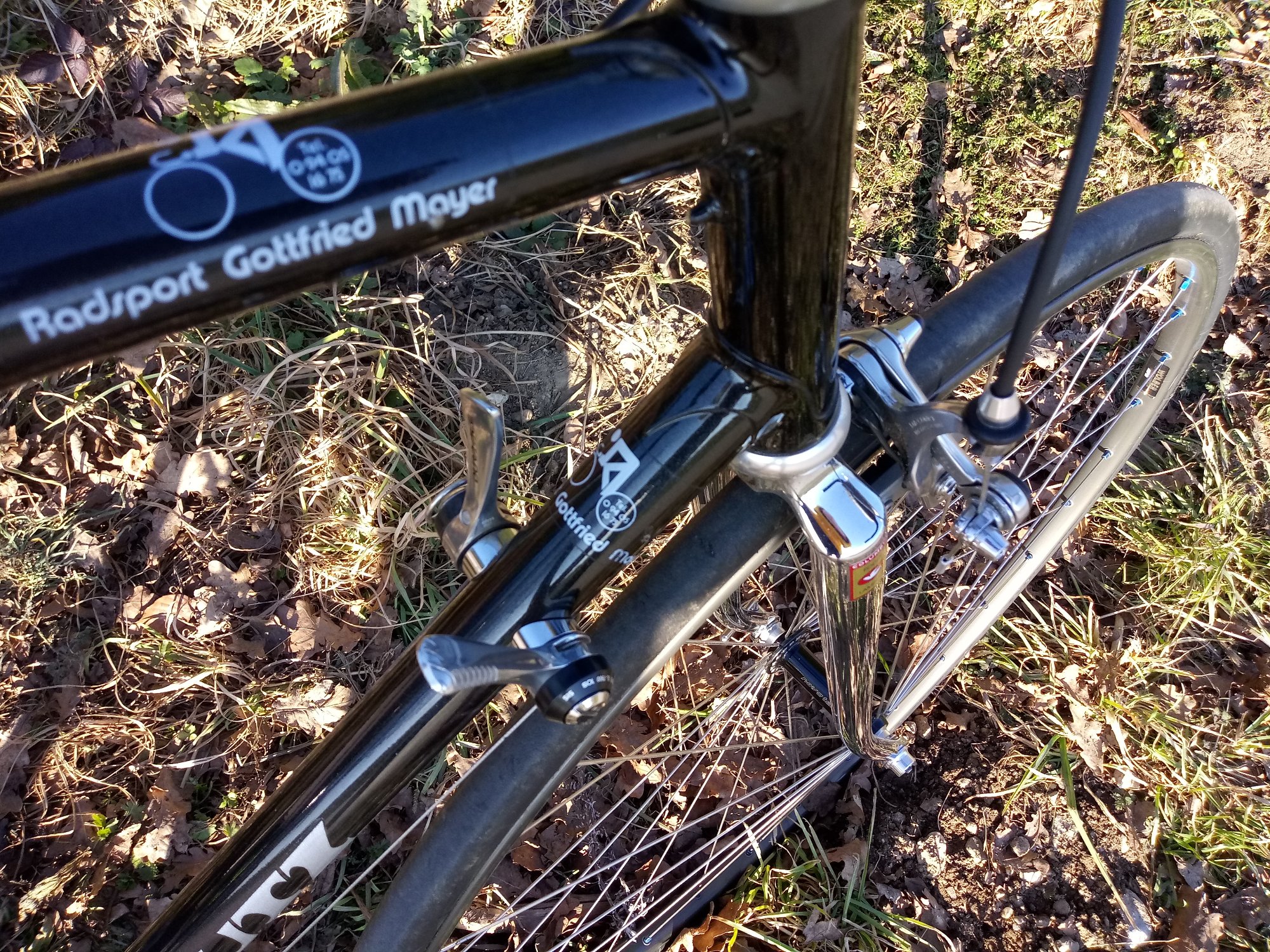 Dann muss ich mein silbernes Bianchi hier auch mal zeigen. Das ist zwar höchstwahrscheinlich nicht bei ihm gekauft worden, aber vielleicht öfter mal zum Service da gewesen? Hier gibts mehr zum nachlesen.Radsport Gottfried Mayer, Regensburg.