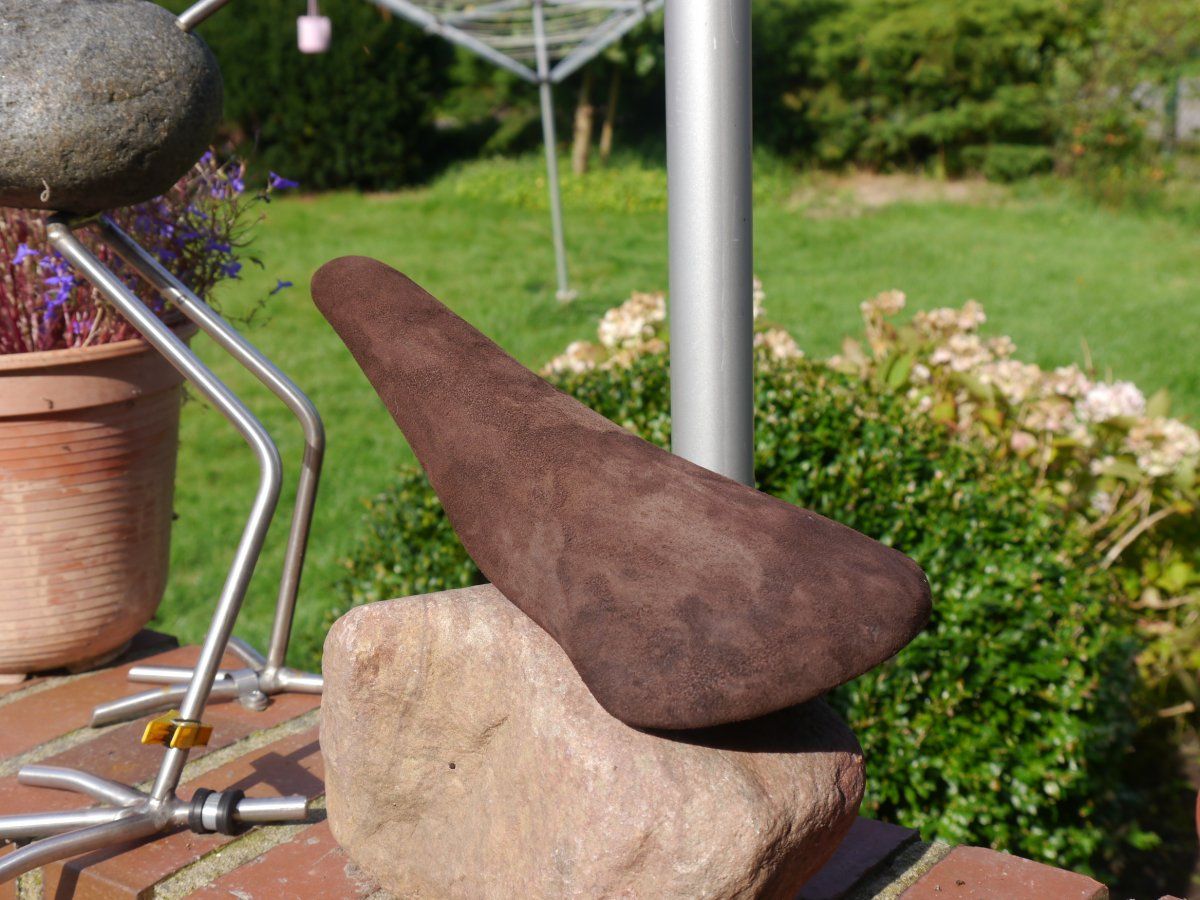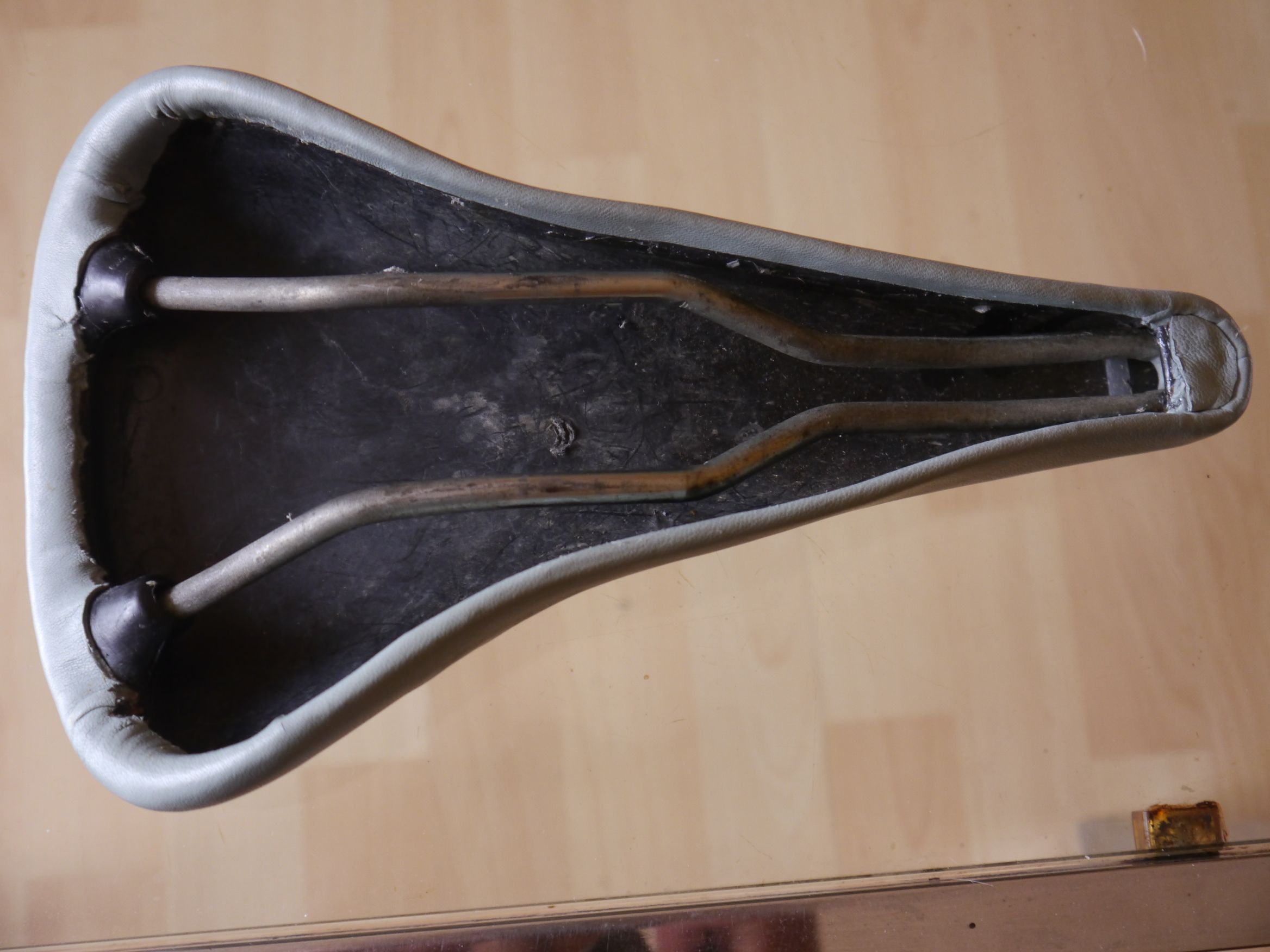 Meine Idee ist jetzt, dem Sattel in der Mitte eine Aussparung zu verpassen. Meint ihr, dass ich das ohne weiteres hinbekomme und ohne ihn neu zu beziehen? Muss ich an den Schnittkanten des etwas tun, damit diese nicht weiter einreißen?