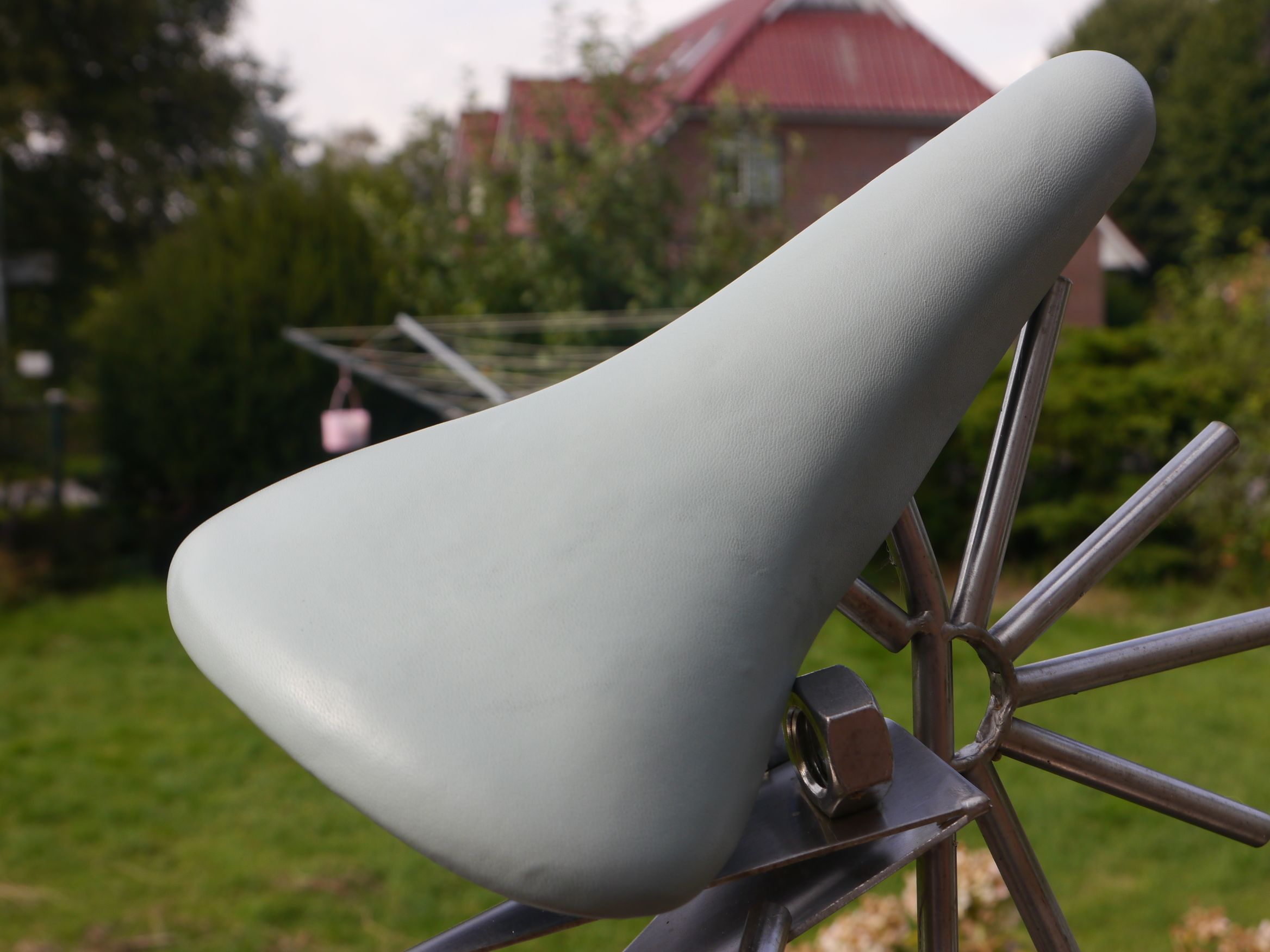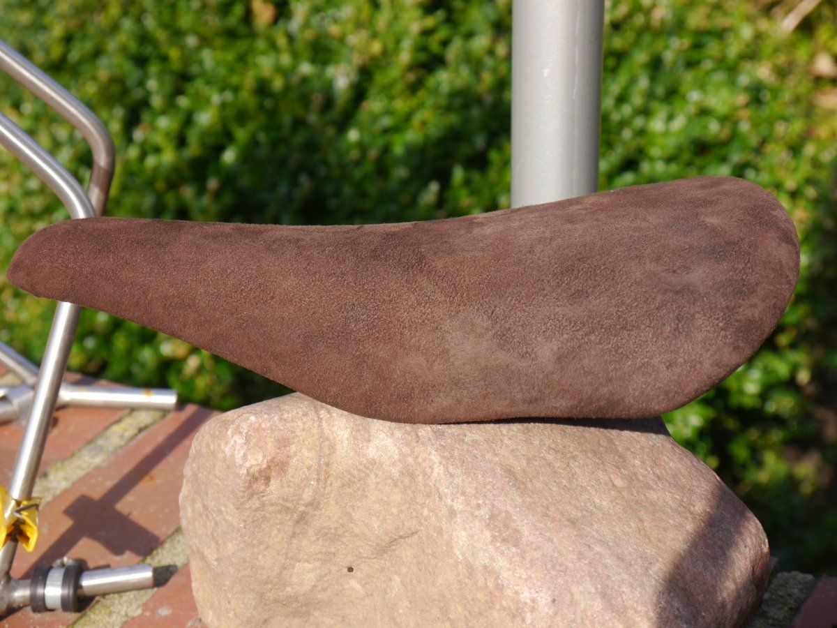 Meinem alten Flite gings jetzt auch einmal an den Kragen - Bezug und Polster sind runtergeflogen, bezogen wurde er mit einem Stück Leder aus einem alten Mantel - die Farbe ist "optimierungsbedürftig", zumindest für das Rad, auf das der Flite soll, aber zum probieren ideal ;)