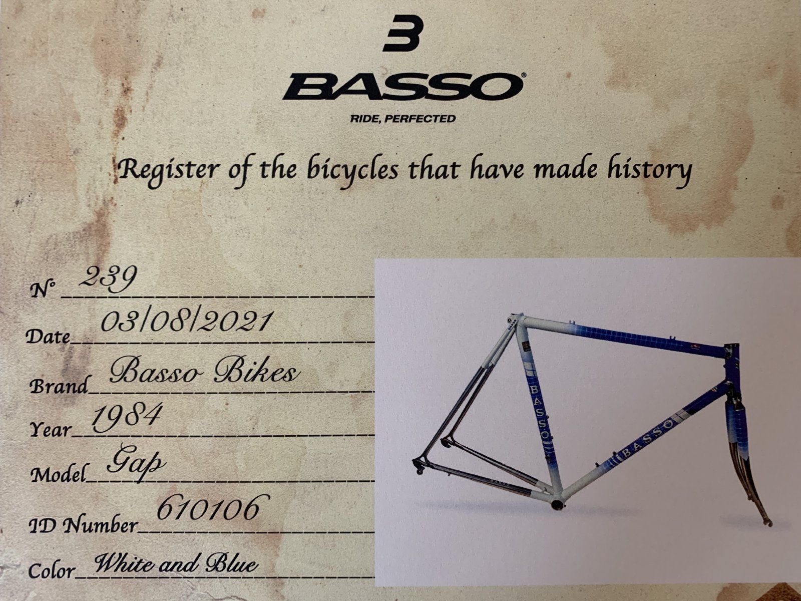 Ich habe schon länger nach einem Mitte bis Ende 80er Basso Ausschau gehalten, weil ich unbedingt ein Rad mit einer Shimano Dura Ace 7400 (non Aero) haben möchte, einfach weil das die beste Gruppe ihrer Zeit und ein echtes Highlight war. Eigentlich hatte ich dafür eine der schrilleren Varianten des Gap oder einen frühen Loto im Sinn, aber die sind offenbar rar in meiner Größe. Na und dann kam der @Axxl70 mit dem um die Ecke und hat ihn auch gleich spontan für mich eingekauft… gut, groß war mein Widerstand da natürlich nicht. War kein Schnäppchen, aber scheint in der Lackierung auch schon fast sowas wie ein Unikat zu sein.
