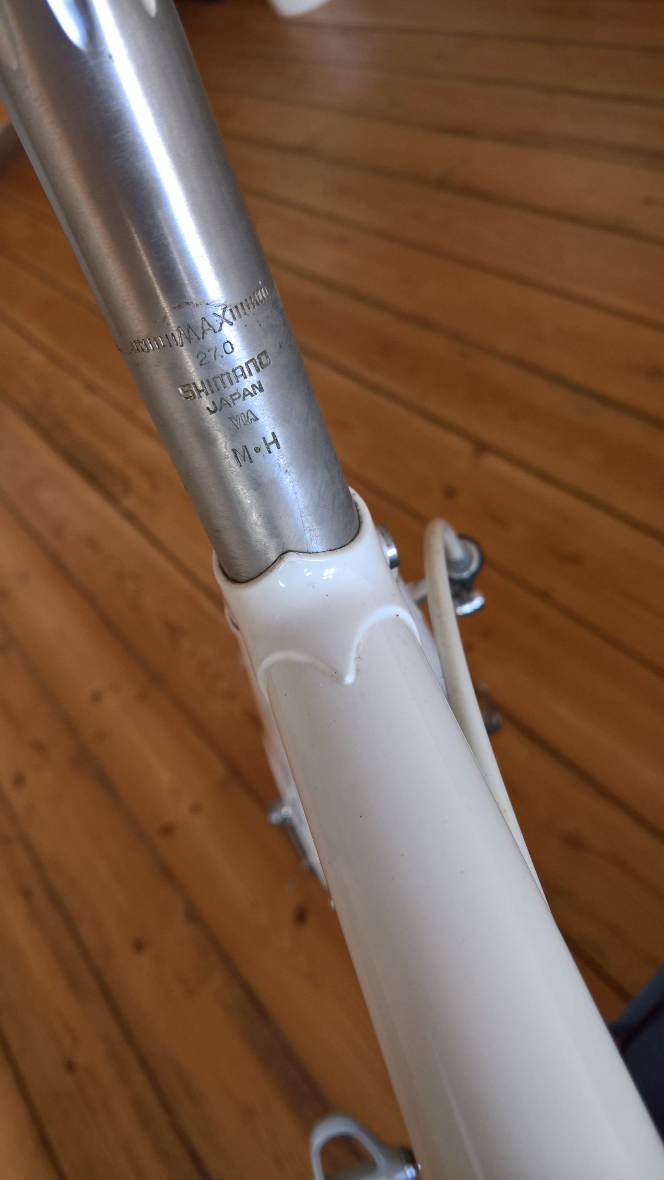 So sah es aus. Unter der Gelauflage verbarg sich der Originalsattel. Die einzigen Schürfwunden hat der Rahmen von der Befestigung des Ständers davongetragen.
