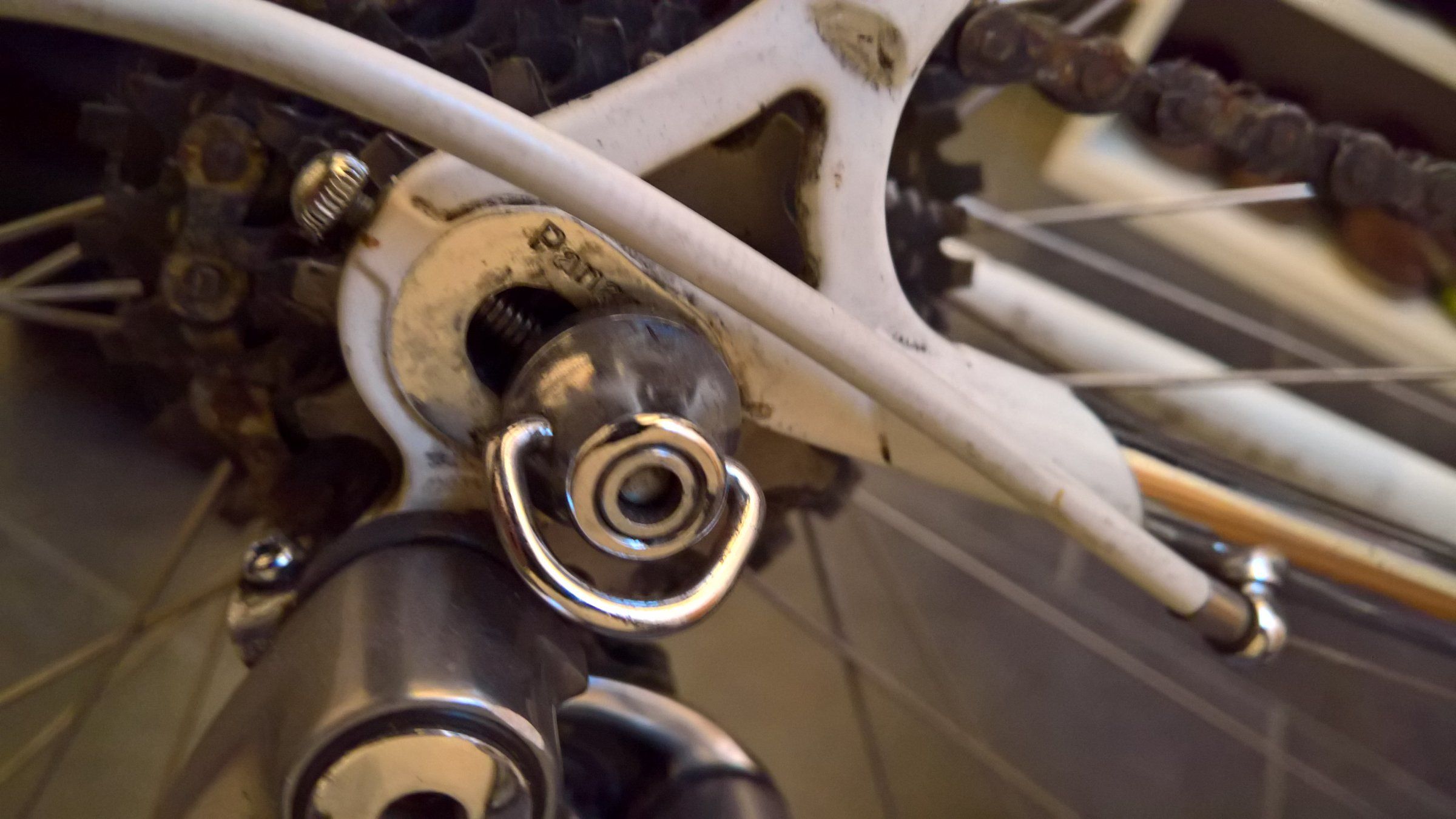 Die Kombination aus XTR Schalthebeln und Dura Ace Schaltwerk und Kassette funktioniert, aber nicht hundertprozentig; eventuell müssen die Spacer zwischen den Ritzeln angepaßt werden. Wenn die Kette sauber auf dem kleinsten Ritzel läuft, reicht der Schaltweg nicht ganz aus, die Kette auf das große Ritzel zu bringen.