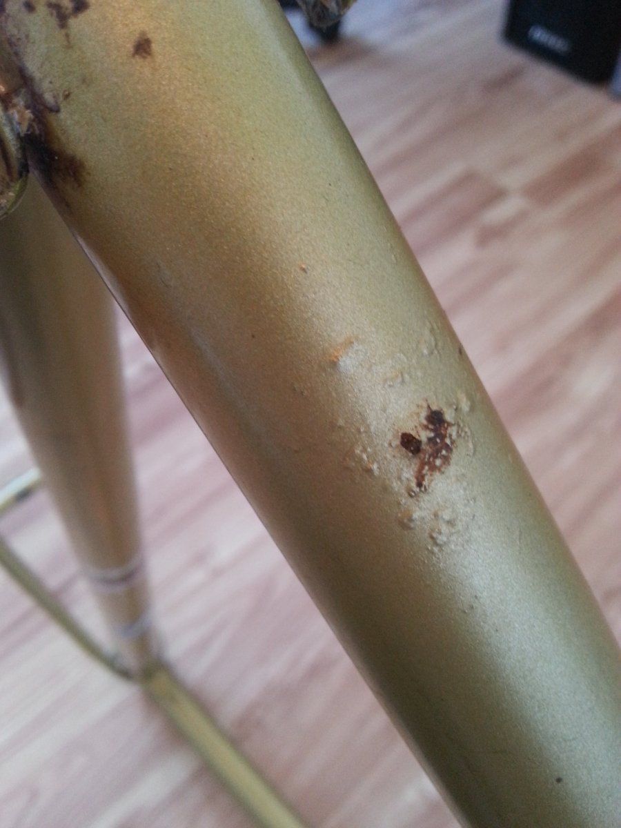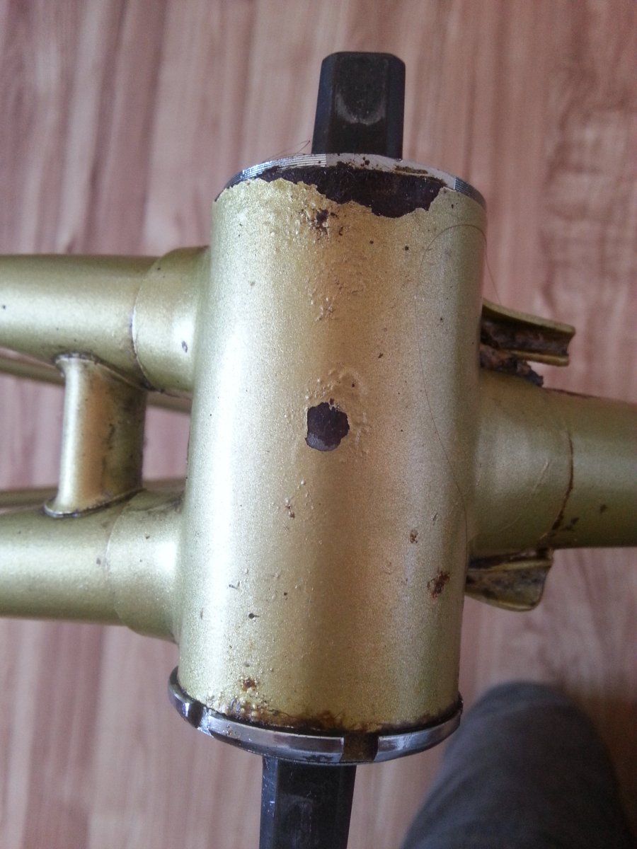 "insgesamt ist der rahmen in einem immer noch schönen zustand mit nur wenigen lackpatzer die ich auch nicht weiter dokumentiere, gehört für mich zu altersgemässer patina." Von Rost ware keine Rede.....