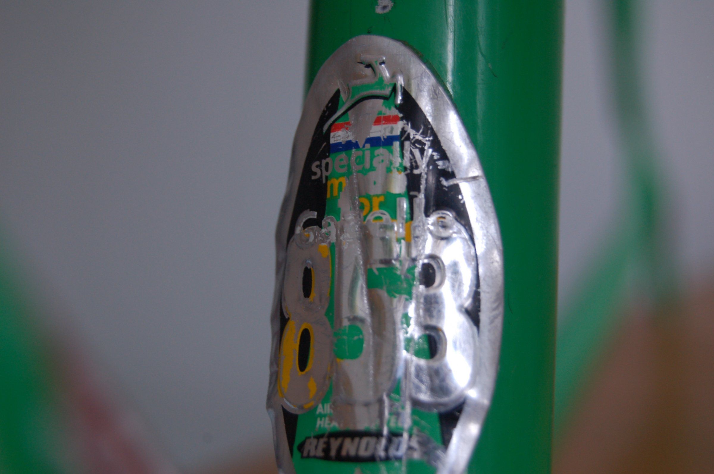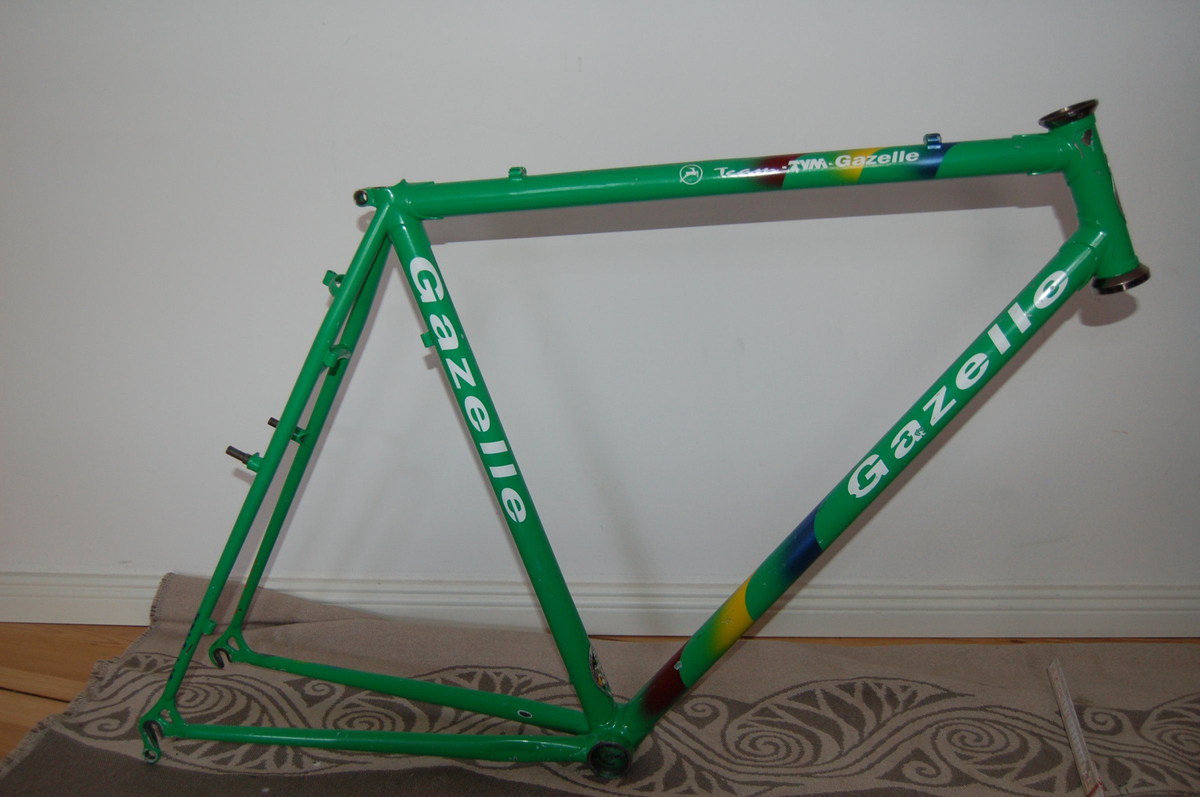 Die handschriftliche Nummer auf der Gabel deutet auf eine Reparatur bei Gazelle hin. Vielleicht wurde der Rahmen ja komplett neu lackiert und mit dem Aufkleber versehen