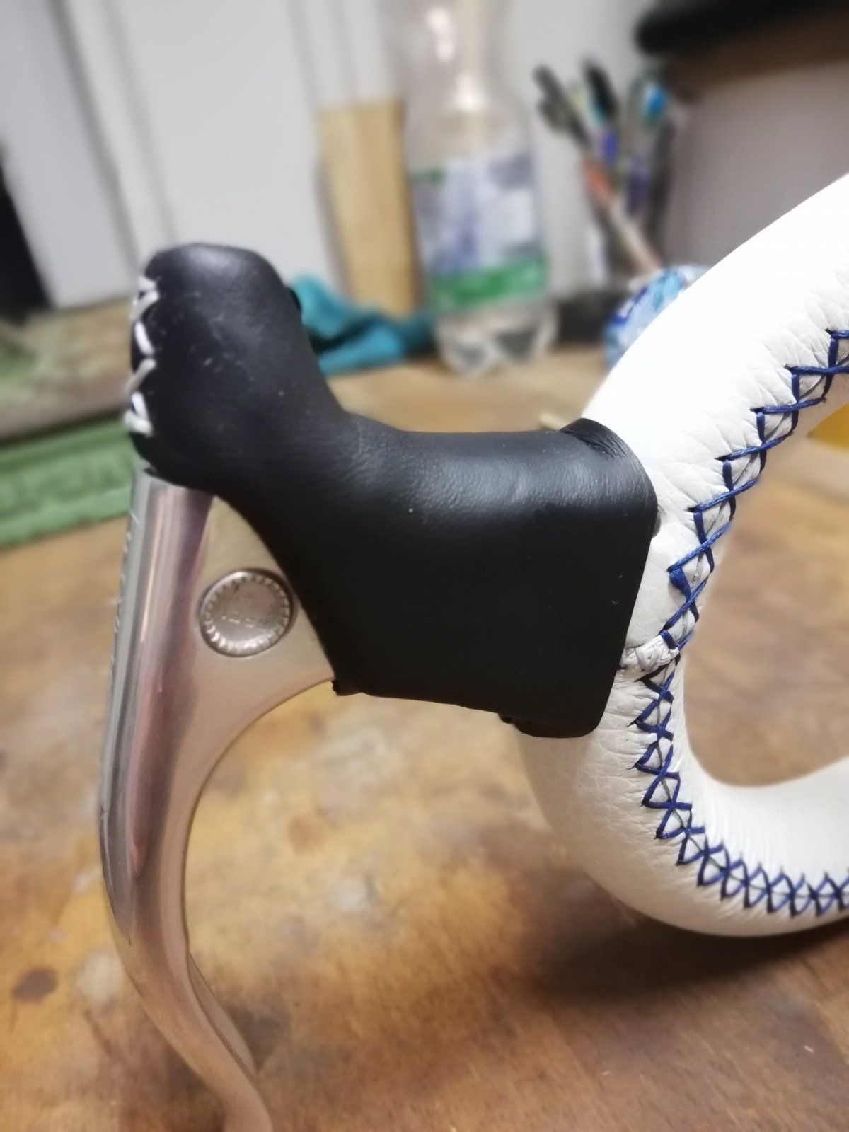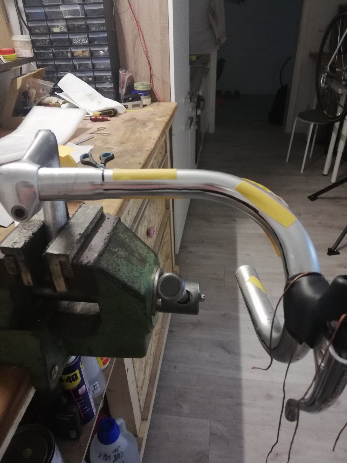 Um das verrutschen zu verhindern habe ich mehrere Streifen doppelseitiges Klebeband auf den Lenker geklebt.