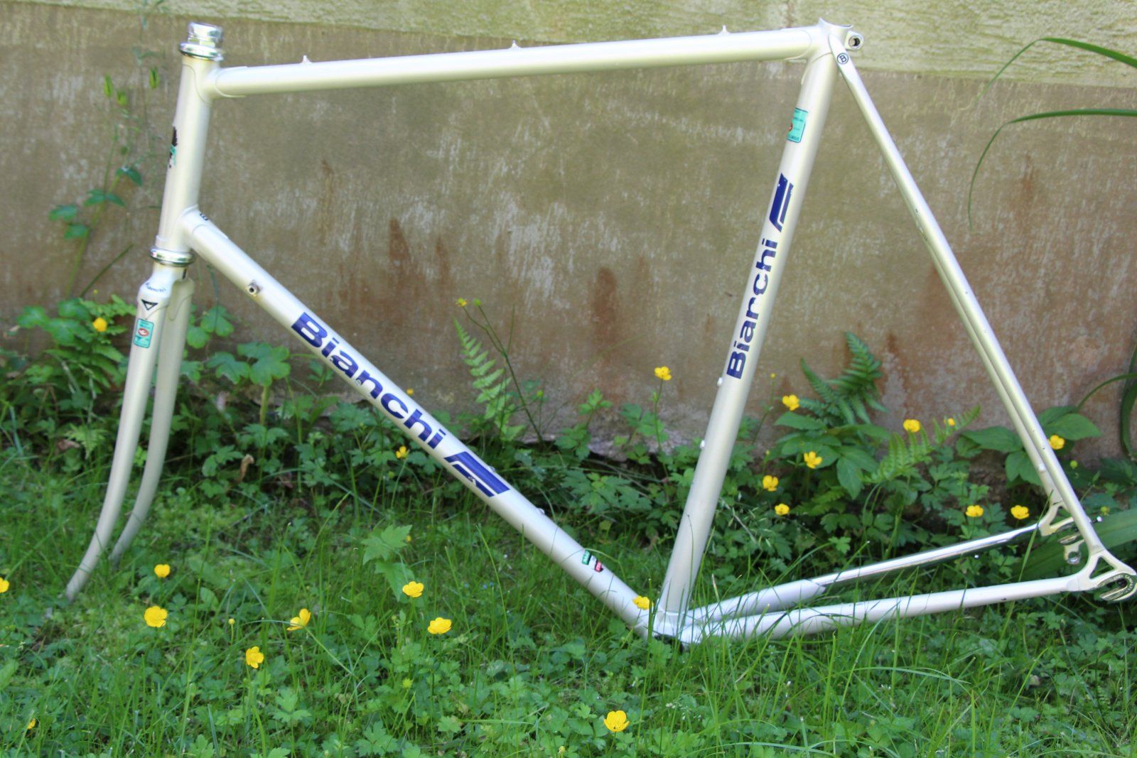 Vorteil: ich finde, die Rahmendetails schöner, es hat noch den alten Gabelkopf mit dem Bianchi-Schriftzug, es hat Campa Ausfaller. Da könnte ich mir eine fast komplett vorhandene Potenza in schwarz dran vorstellen, allerdings mit einer alternativen Kurbel (die ich eh nicht hab) Nachteil: In die Campa Ausfaller kann ich keine Schutzbleche ohne weitere Schellen, Adapter oder ähnliches schrauben. Weiß sieht immer dreckig aus. Ich müsste den guten Super Record Steuersatz im Alltag zerfahren oder durch eine Zwiebel ersetzen, dann passt aber auch die blau ausgelegte SR Stütze nicht mehr, die müsste dann auch eine C-Record werden. Und ich müsste eine dunkelblauen Sele Italia SLR finden.