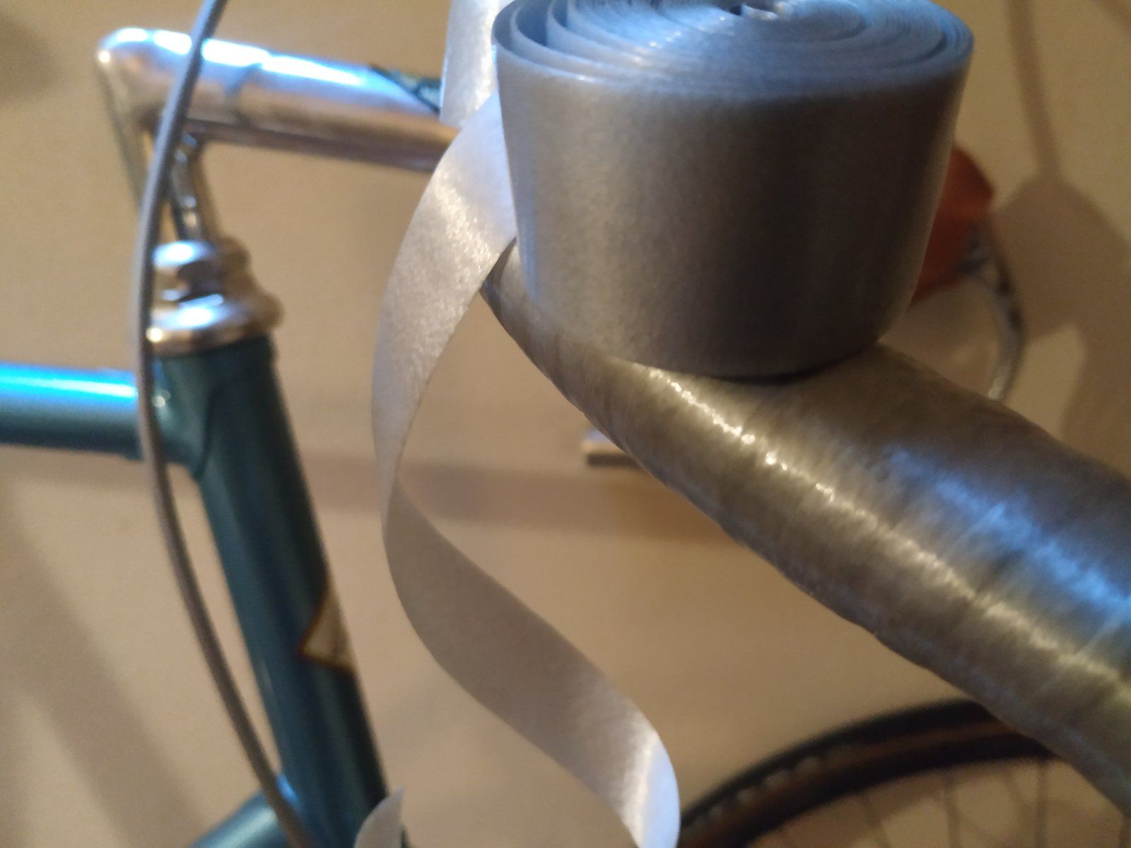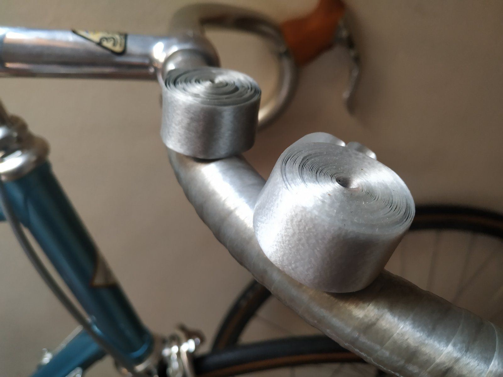 ...ich wickle von unten beginnend, wobei ich den Anfang des Lenkerbandes und auch den Stopfen mit einem kleinen Stück Tesa fixiere. Am Oberen Abschluss habe ich das Ende des Lenkerbandes bisher mit extrem haftendem, doppelseitigen Klebeband fixiert. Hier wäre ggf. auch ein farblich passendes Gewebeklebebeband als Abschluss "legitim"!