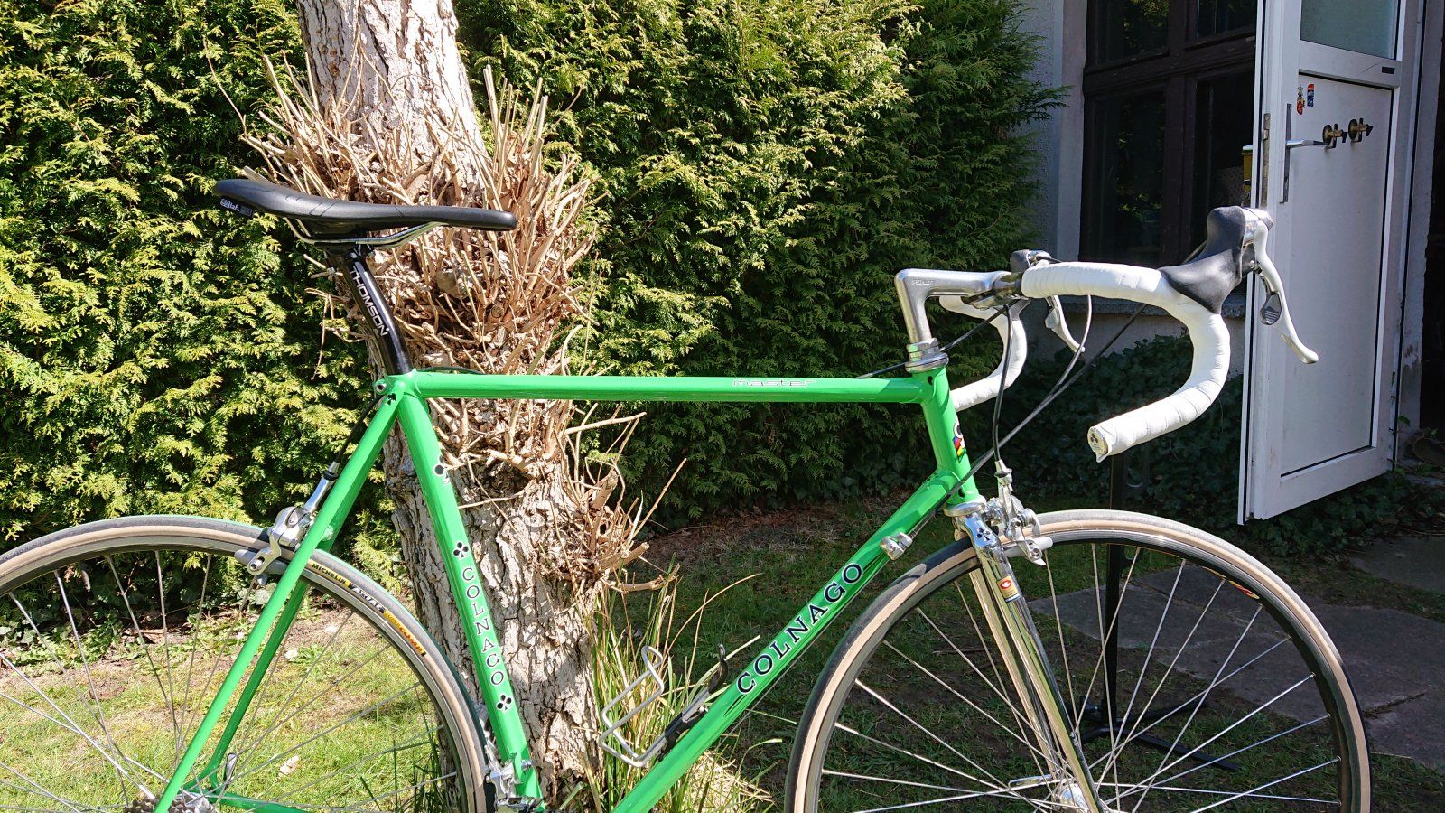 Die Thomson-Stützen sind wunderbar, ich habe auch noch eine silberne, die aber zu lang für das Colnago ist. Ich will eine für dieses Rad bestellen, zögere aber noch bei der Frage, mit oder ohne Knick. Auch zögere ich, ob es nicht eine Sattelstütze gibt, die "historisch" bester passt. Dank @redo weiß ich jetzt ja, wie sie aussehen sollte