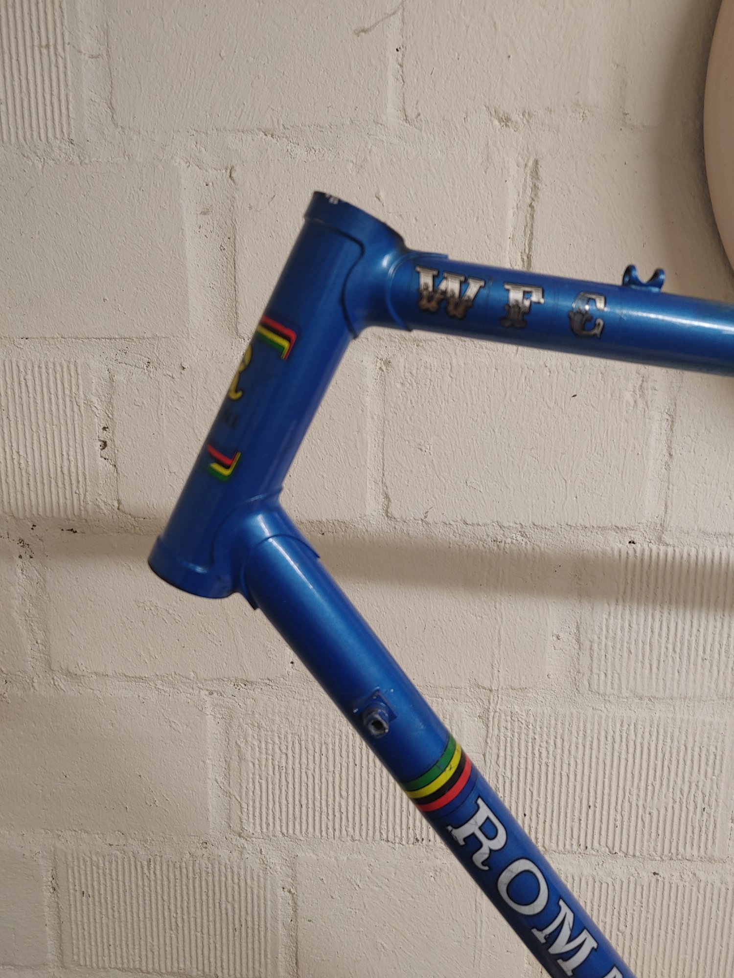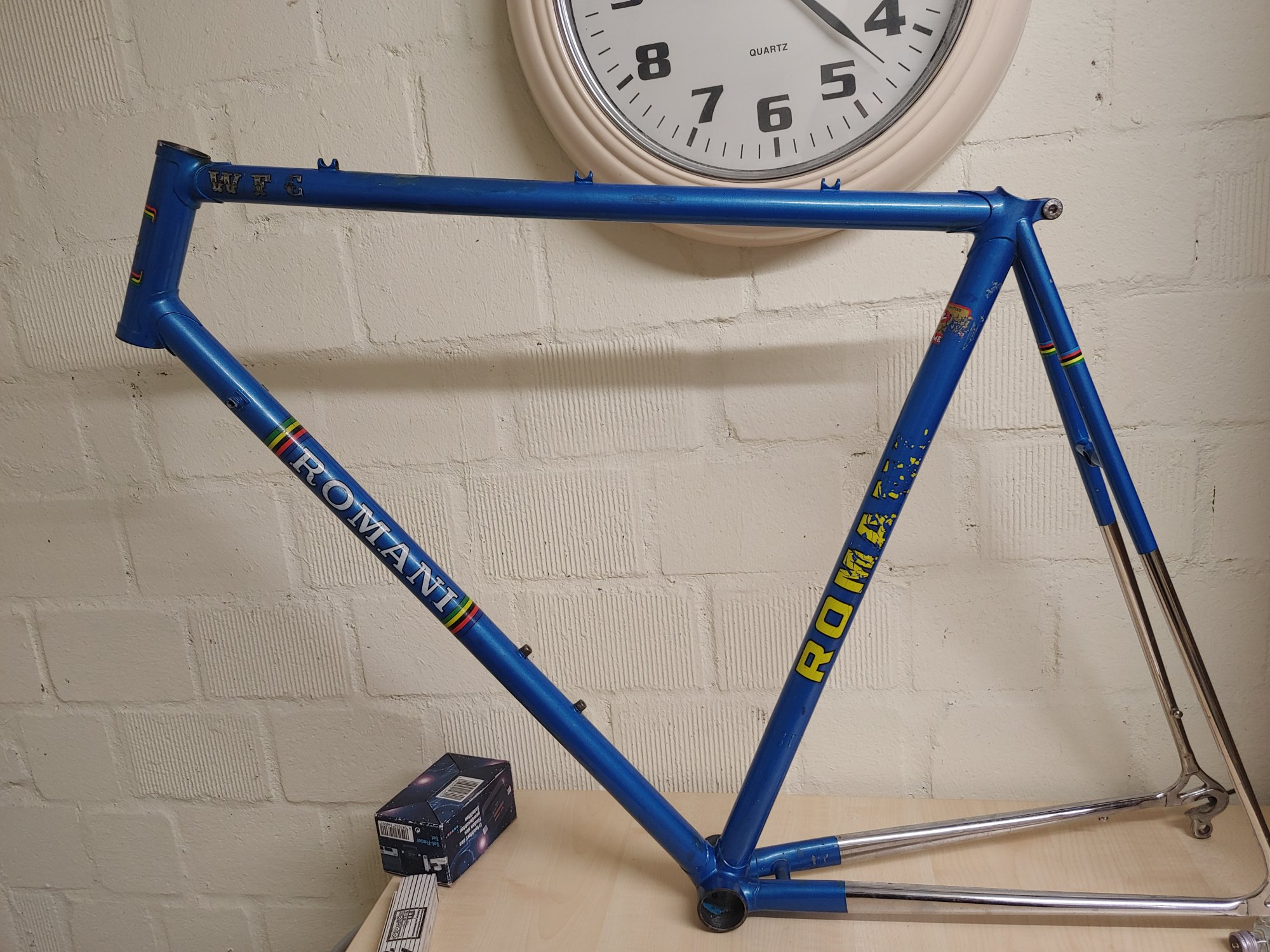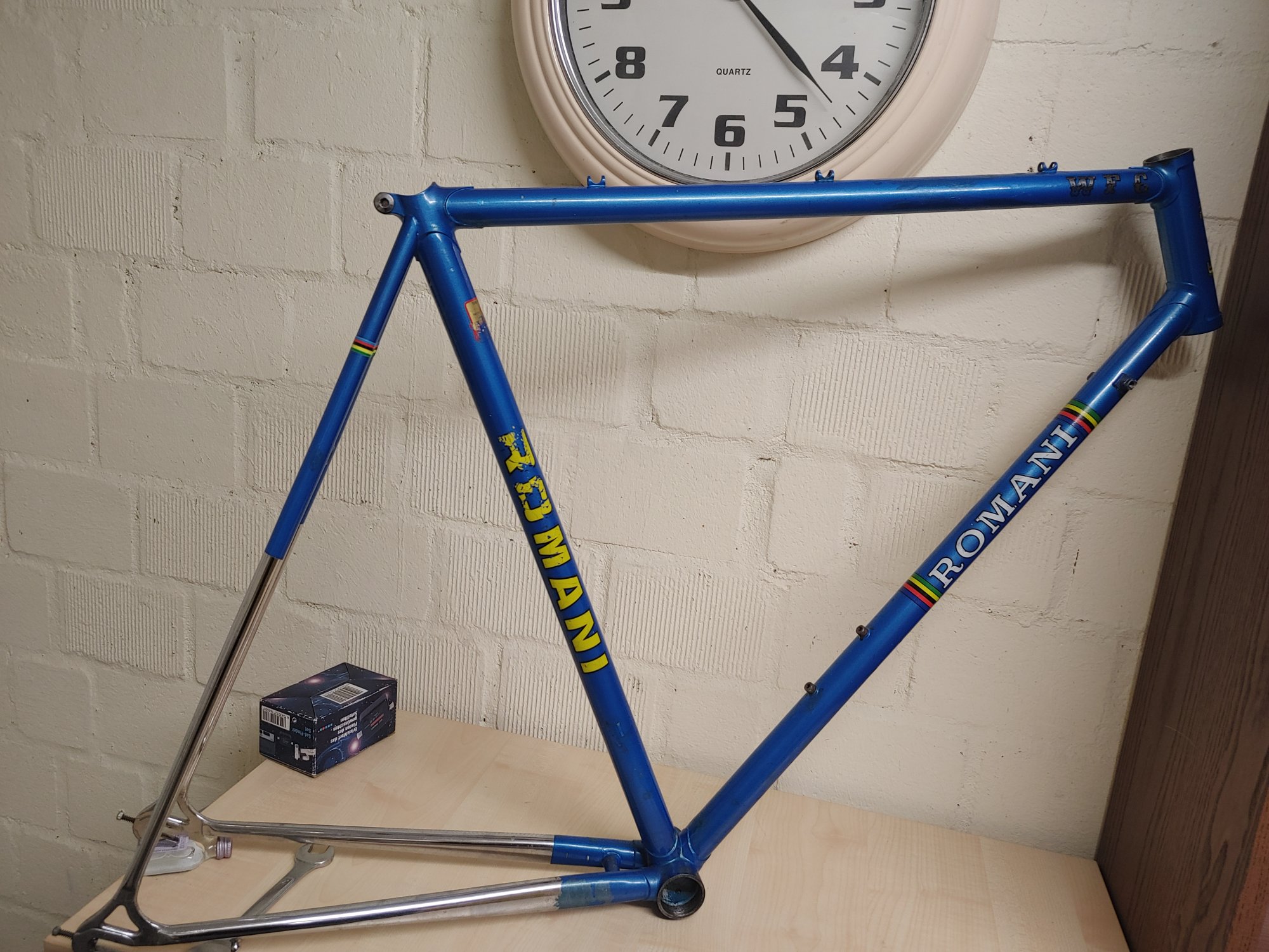 80!Rahmenset Romani Columbus Aelle, SR c-c 59cm, c-t 60cm, OR c-c 57cm, ITA, EB 126mm, Klemmmaß 26,8mm, recht schöner Zustand, ungereinigt! 90EUR