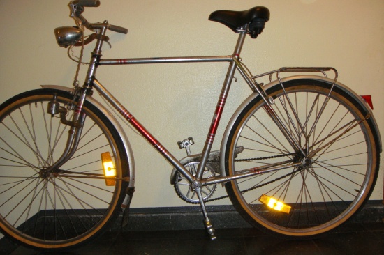 Im Gegensatz zu den Bilder wurde folgendes Verändert: Klick-Schalthebel statt dem Schwenkhebel, der org. Vorbau ist montiert, org. Hahn klingel & Hahn Schutzblechfigur sind montiert, der Gepäckträger ist demontiert.
