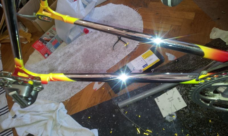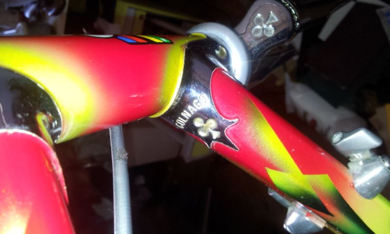 Sehr schönes Rad, mit dem besten von damals aufgebaut. Das vielleicht nicht alles SR ist, ist ganz normal gewesen in der Zeit. Selbst wenn man das gewollt hätte, konnte Campa das nicht immer liefern. Zeitweise war wohl auch was aus dem Programm genommen, wegen Problemen mit den Titanachsen......Italia eben.