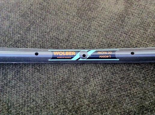 1x wolber profil 20, blau/orangener aufkleber, schlauchreifenfelge, 32loch ungeöst. schon bissi angebremst, aber geht noch würde ich sagen... ----10,-