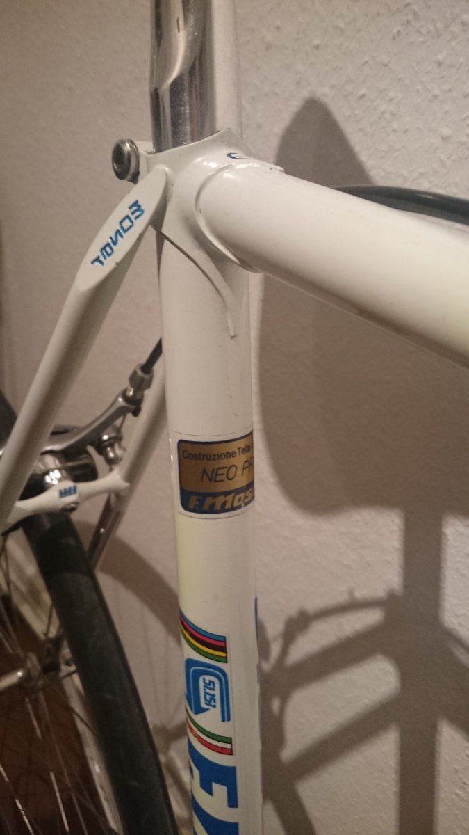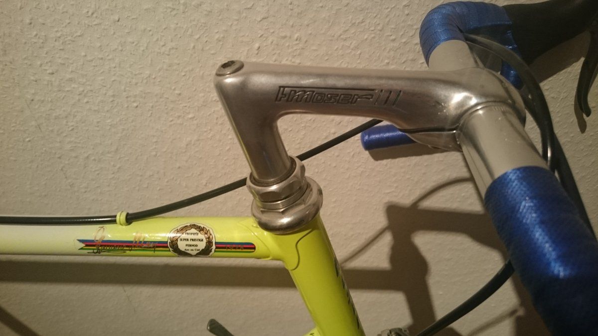 Über den Hersteller bin ich mir nicht hundert prozentig sicher. Auf dem Speichenkopf is ein A gepresst. Ich vermute es sind Alpina Speichen. Es gab aber noch einige andere Hersteller die auf ihren Speichenköpfen ein A gepresst haben.