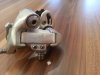 Felgen tippe ich auf Mavic GP4 von der Form her, die Felgen sind aber entlabelt worden. Bremsflanke vorne noch top, hinten etwas angebremst, ich hoffe die Bilder stellen das einigermaßen dar.