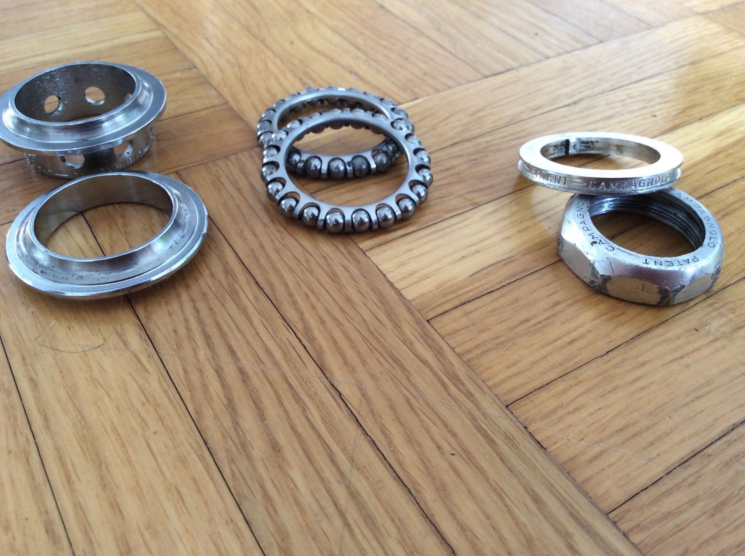 Super record steuersatz... Untere lagerschale ist außen gebrochen, sonst eigentlich noch ganz ok. Als ersatzteilspender. ging auch problemlos zu fahren 25€