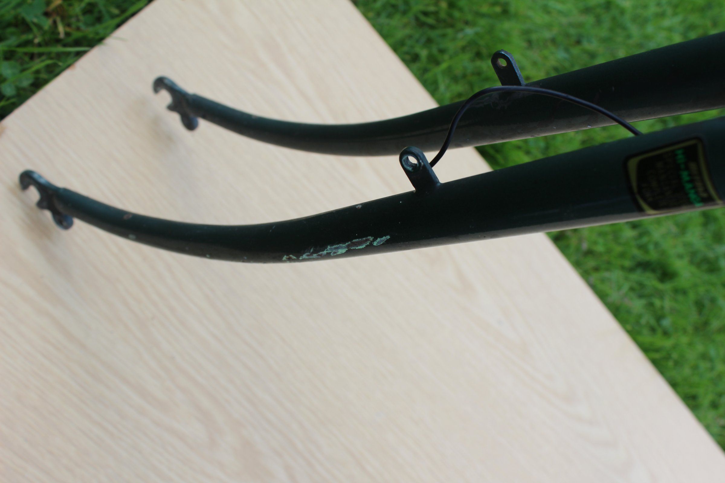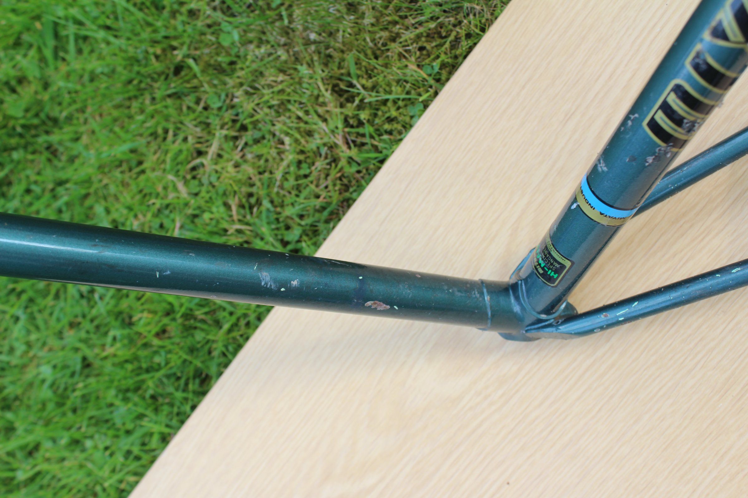 Das Rad steht in Summe richtig gut da, in 20 Jahren kommt es natürlich zu ein paar Spuren. Der Made in USA Aufkleber wurde vom Vorbesitzer mit Tesafilm wieder gefixt, da er sich abzulösen drohte. Hier die relevanten Stellen: