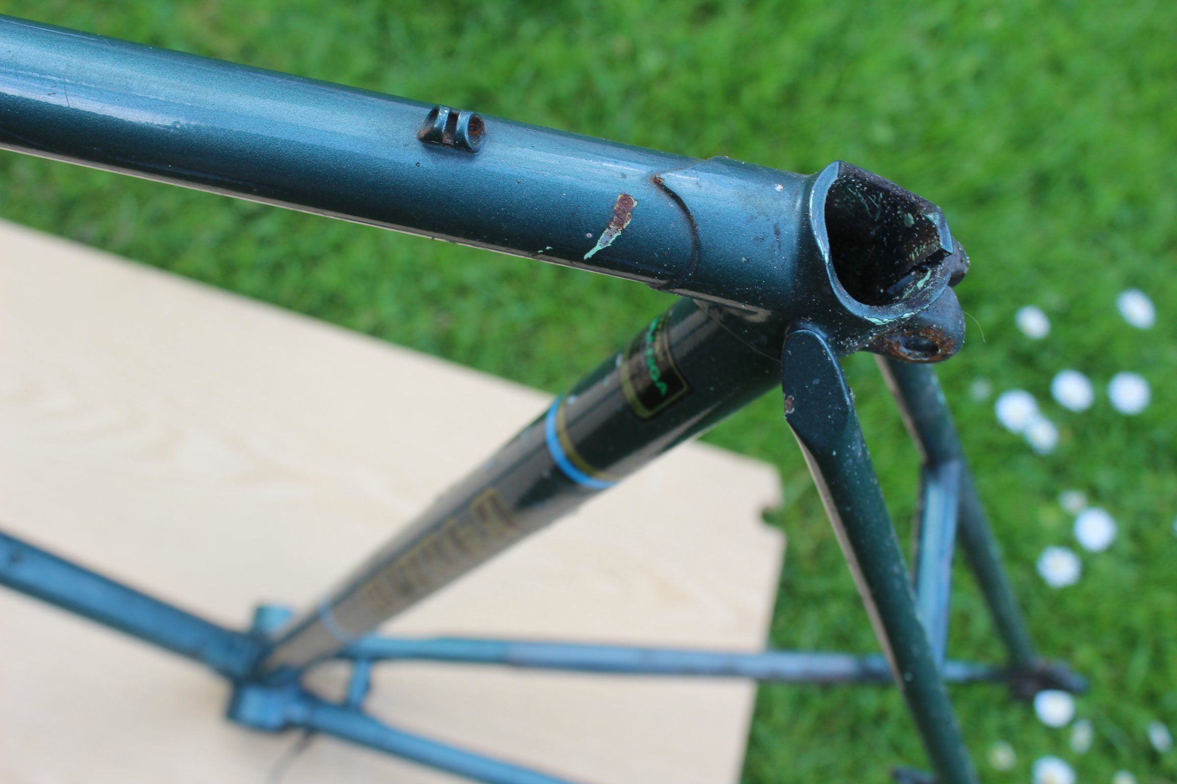Ich biete ein Eddy Merckx Corsa Extra Rahmen aus SLX Rohr in RH 63 (M-O). Mir bekannte Mängel: Die hintere, verchromte Strebe hat einen kleinen Steinschlag. Der Lack v.a. auf dem Oberrohr hat Abplatzer, die z.T. schlecht ausgebessert worden. Bei dem Blau des Rahmens kann man das sicher ausbessern (lassen). Die roten Stellen sind kein Rost sondern Grundierung (habe ich auch bei meinem anderen Merckx).