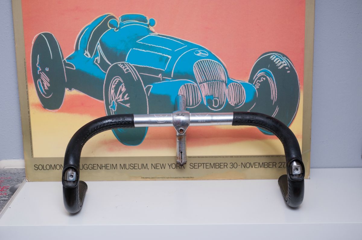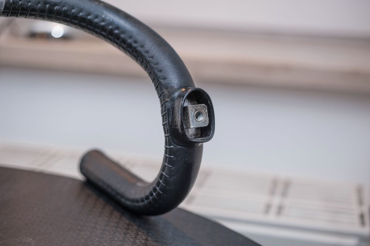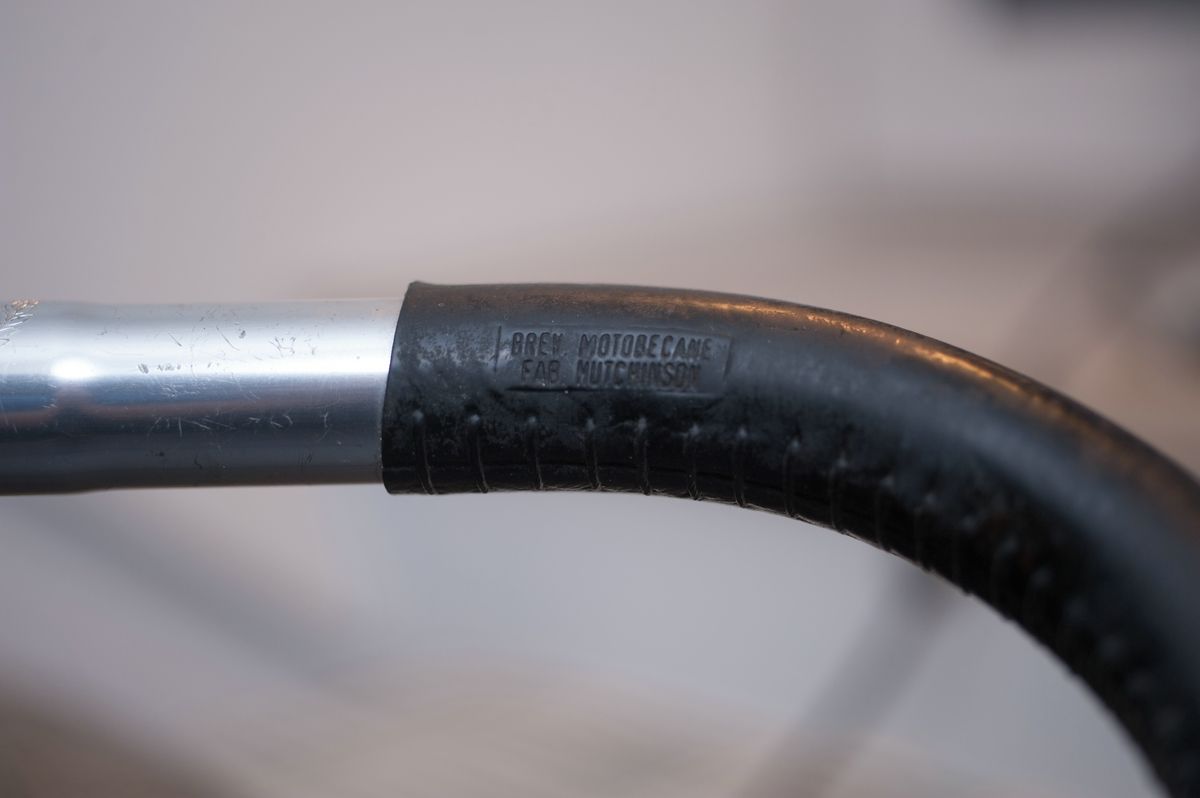 Bremshebel mit weißen Hoods - neu aber waren wohl mal montiert. Sieht man an den dezenten Klebespuren der Chromschellen.