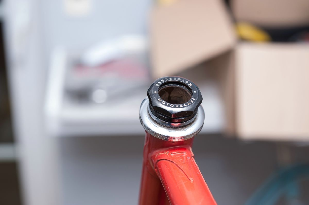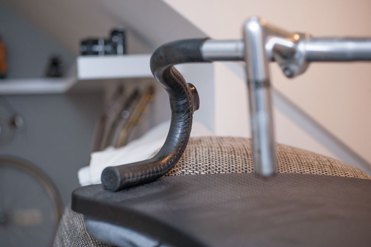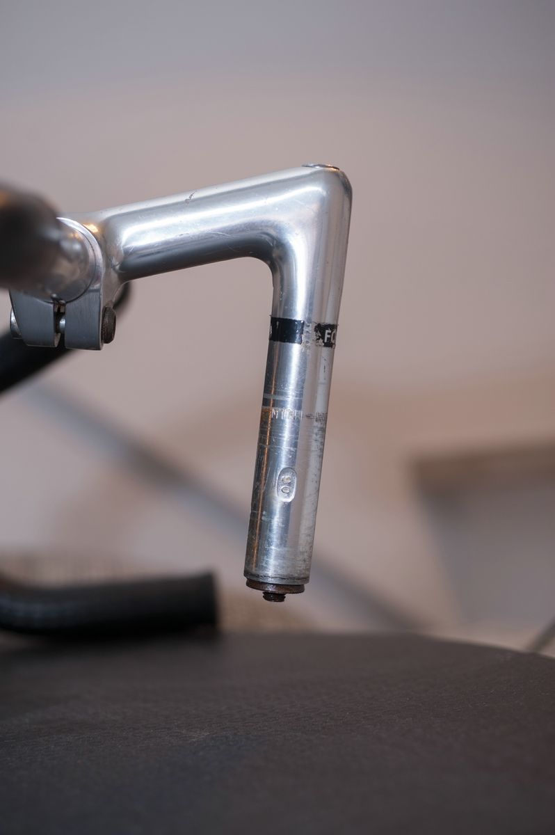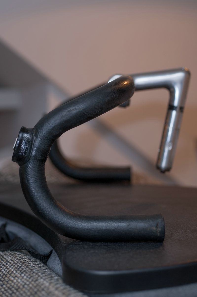 Bremshebel mit weißen Hoods - neu aber waren wohl mal montiert. Sieht man an den dezenten Klebespuren der Chromschellen.
