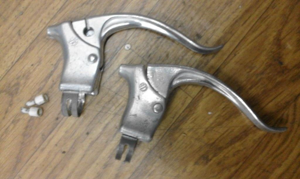 CLB Course Alpes Bremshebel aus den 1960ern. gebraucht in gutem Zustand. Komplett aus Alu. Plastenöpsies für die Bowdenzüge sind dabei.