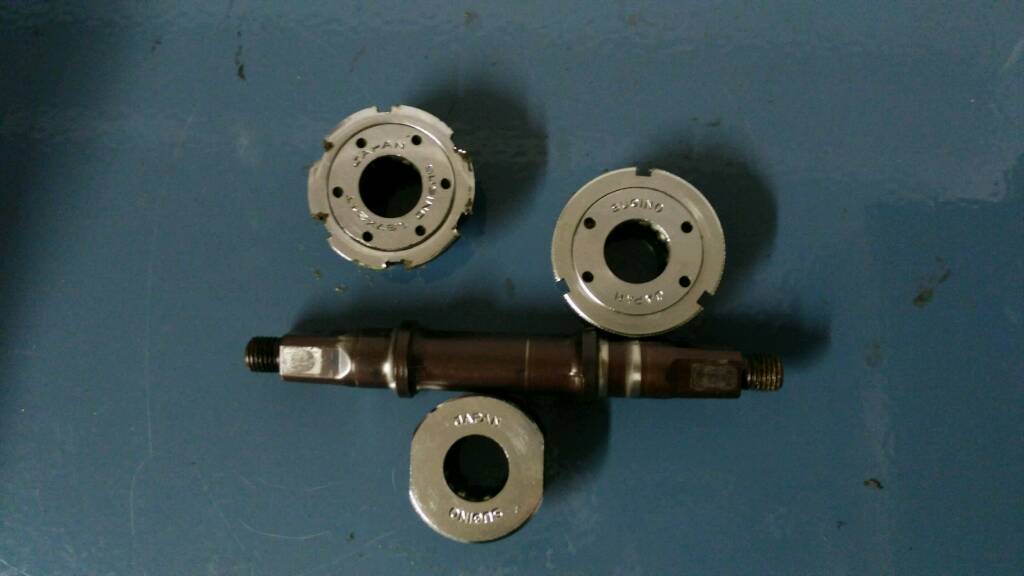 Sugino Tretlager BSA + zusätzliche ältere Sugino BSA Schale links. Das BB ist gebraucht, war nur kurze Zeit verbaut. Muttern für die Welle fehlen. 15€ inkl. Versand