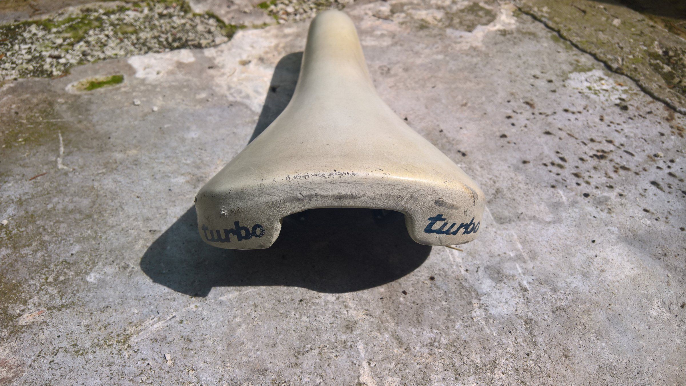 Koga Miyata Wildleder Sattel mit einem lütschen Loch. Ich habe versucht, es mit der Kamera festzuhalten. Evtl. muß man zweimal hinschauen - Gegen Versandkosten, am liebsten Päckchen EUR 4,00 -- weg