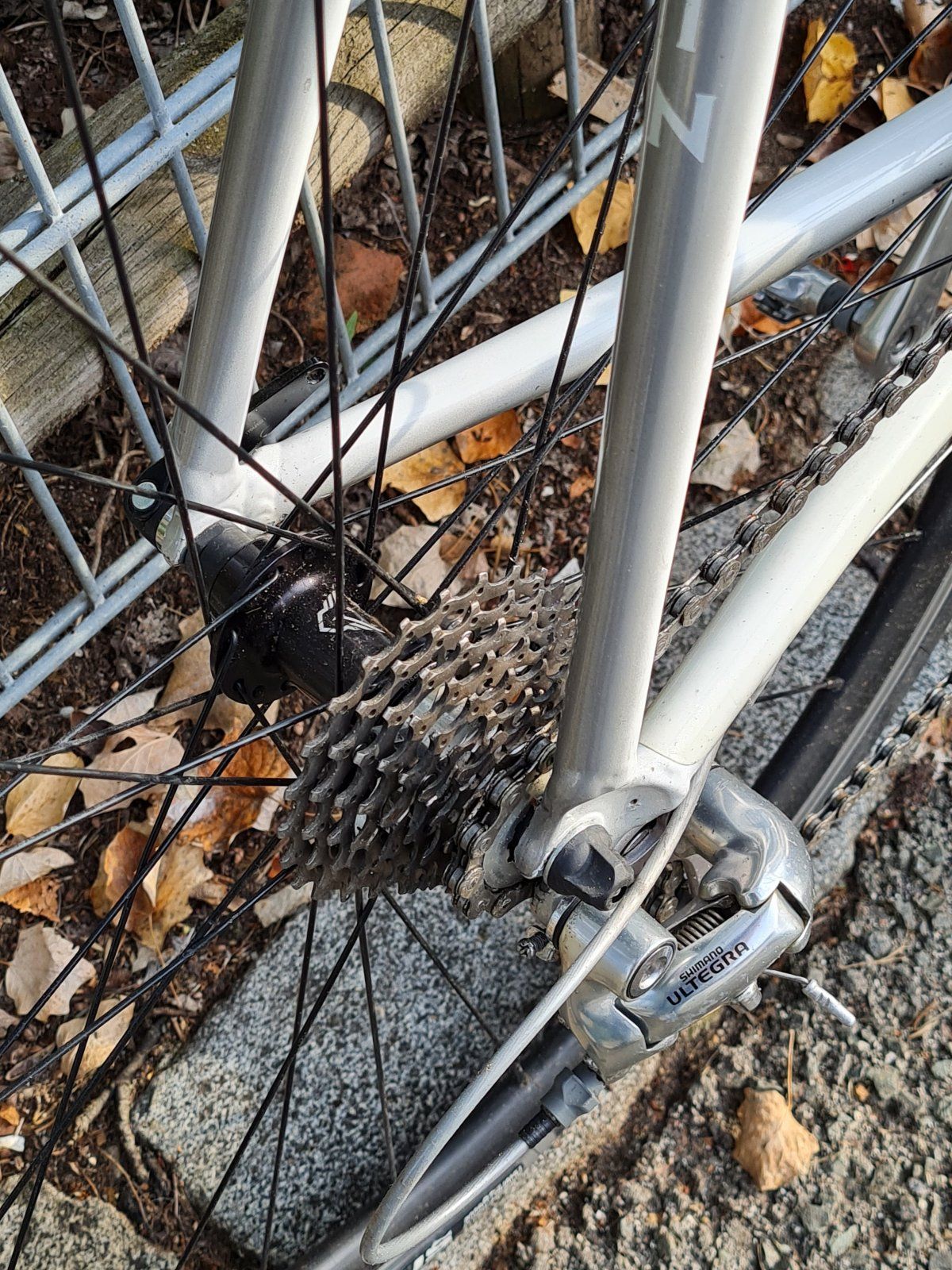 Die Kuwahara Hi-Pacer sind sehr aufwendig verarbeitet (z.B. innenverlegte Schaltzüge durch Unterrohr und Kettenstrebe) und lackiert. Man wird ein solches kaum unter 500€ angeboten finden – insofern hatte ich großes Glück. Und meines ist im original Katalog-Auslieferungszustand ...