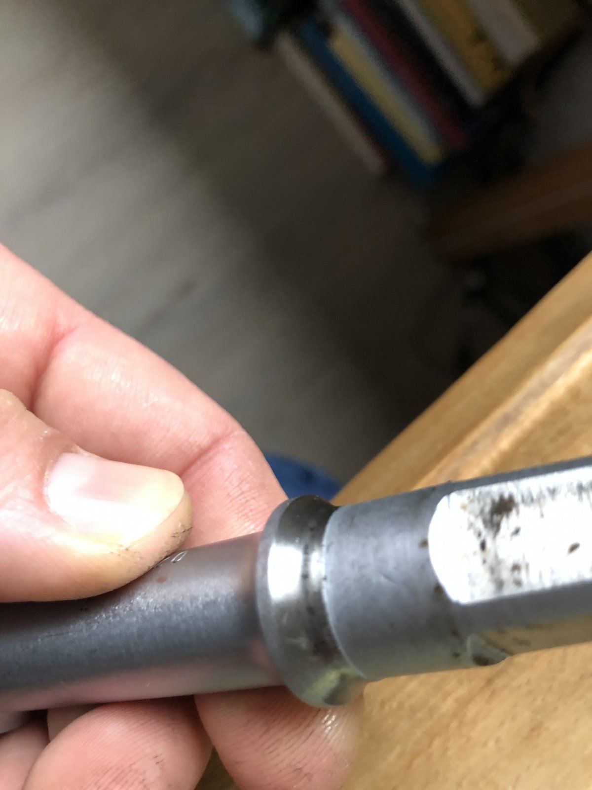 So sieht das entsprechende Werkzeug aus, Innenfünfkant mit Rändelschraube zum Sichern gegen Abrutschen. Geht natürlich auch ohne die Schraube, wenn es man sorgsam ansetzt.