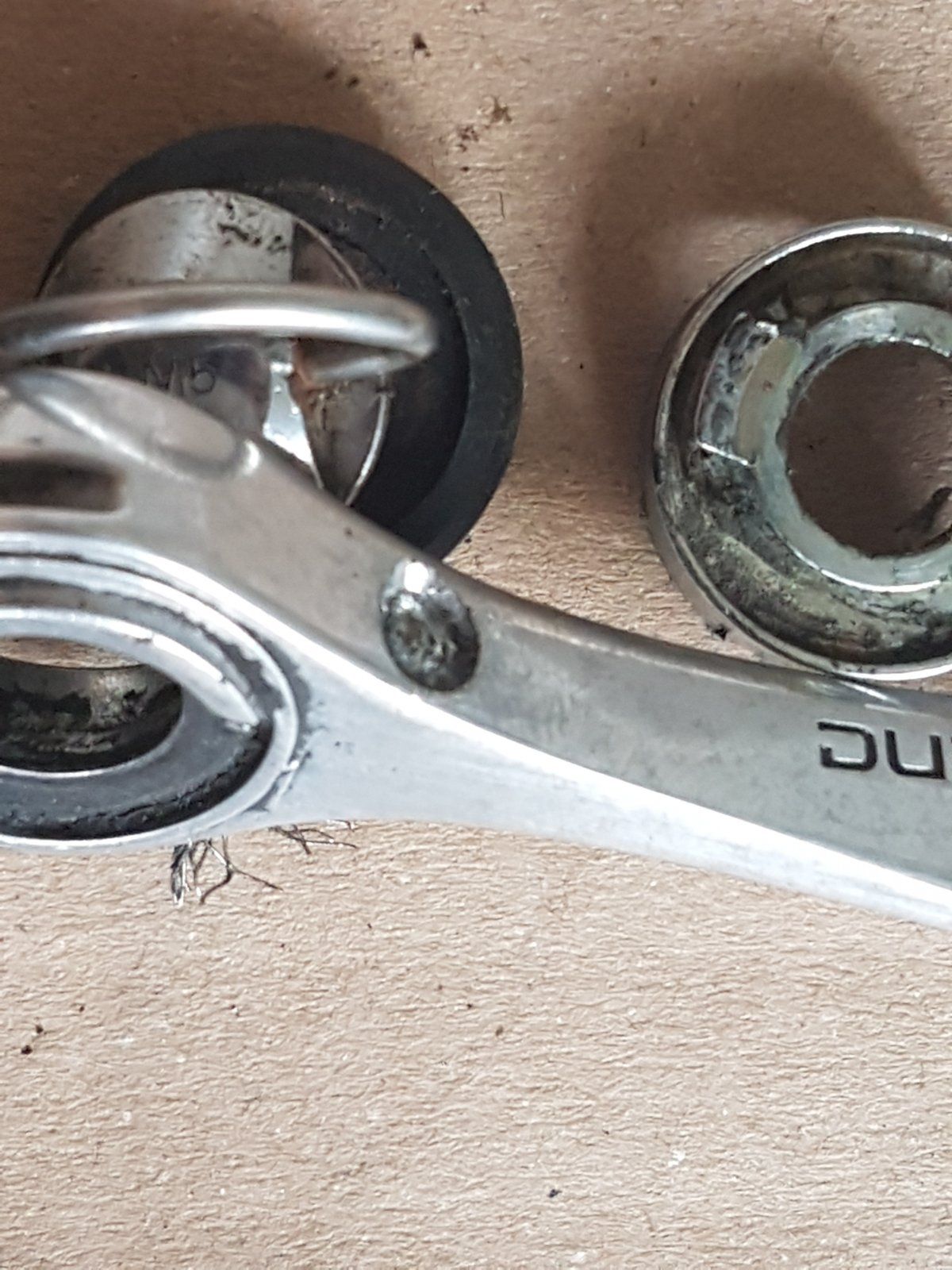 Heillige Mutter Gottes!... und erlöse mich von dem Bösen. Nachdem ich mir bei dem Versuch den Schaltzug aus den Hebeln zu entfernen in den Finger gebohrt habe, hier ein paar 6fach Dura Ace Schalthebel. War gestern noch montiert und hat einwandfrei geschaltet. Jetzt vielleicht für jemanden mit mehr Gedult oder besserem Werkzeug.