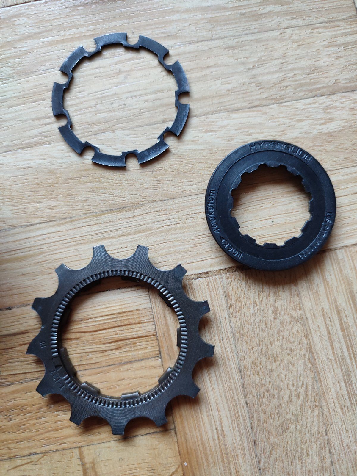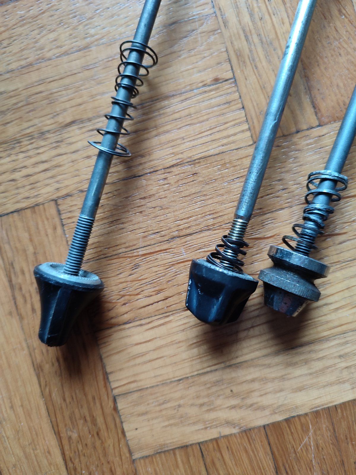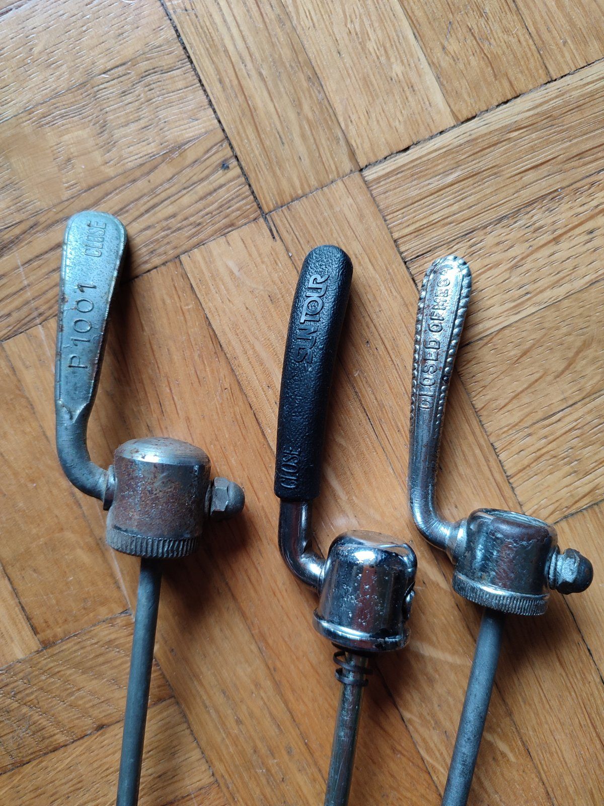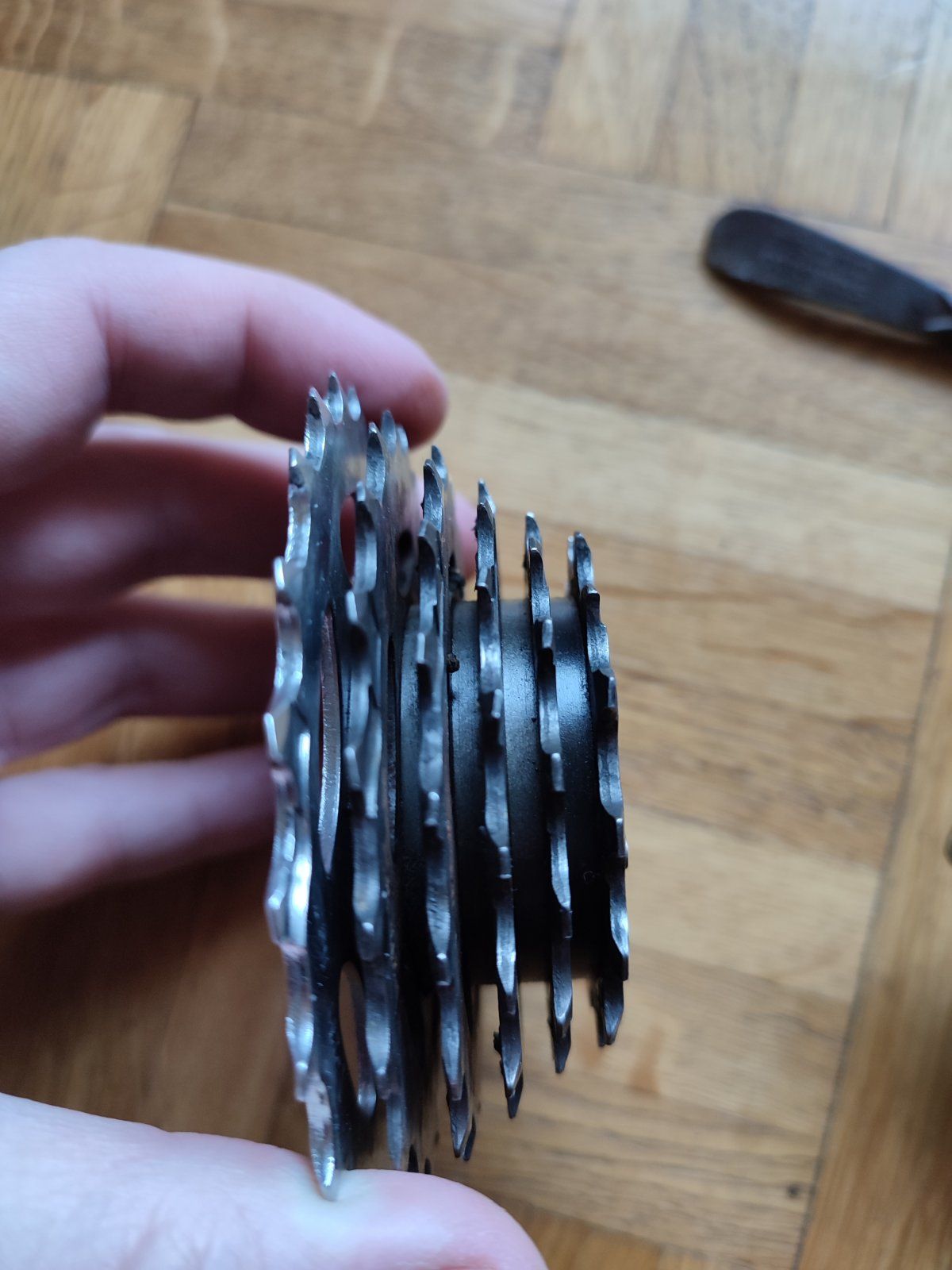 Für weitere 5 Euro haue ich gerne noch drei Schnellspanner (Suntour, Pelissier, Ofmega) zum Aufarbeiten und ne Sakae Sattelstütze mit 26,8mm dazu...Shimano FH-HG50 HR Nabe und 7fach Kassette Hyperglide, Schnellspanner mit Patina gibts dazu. Nabe dreht einwandfrei, aber sollte mal neues Fett rein. 13-23 Zähne.