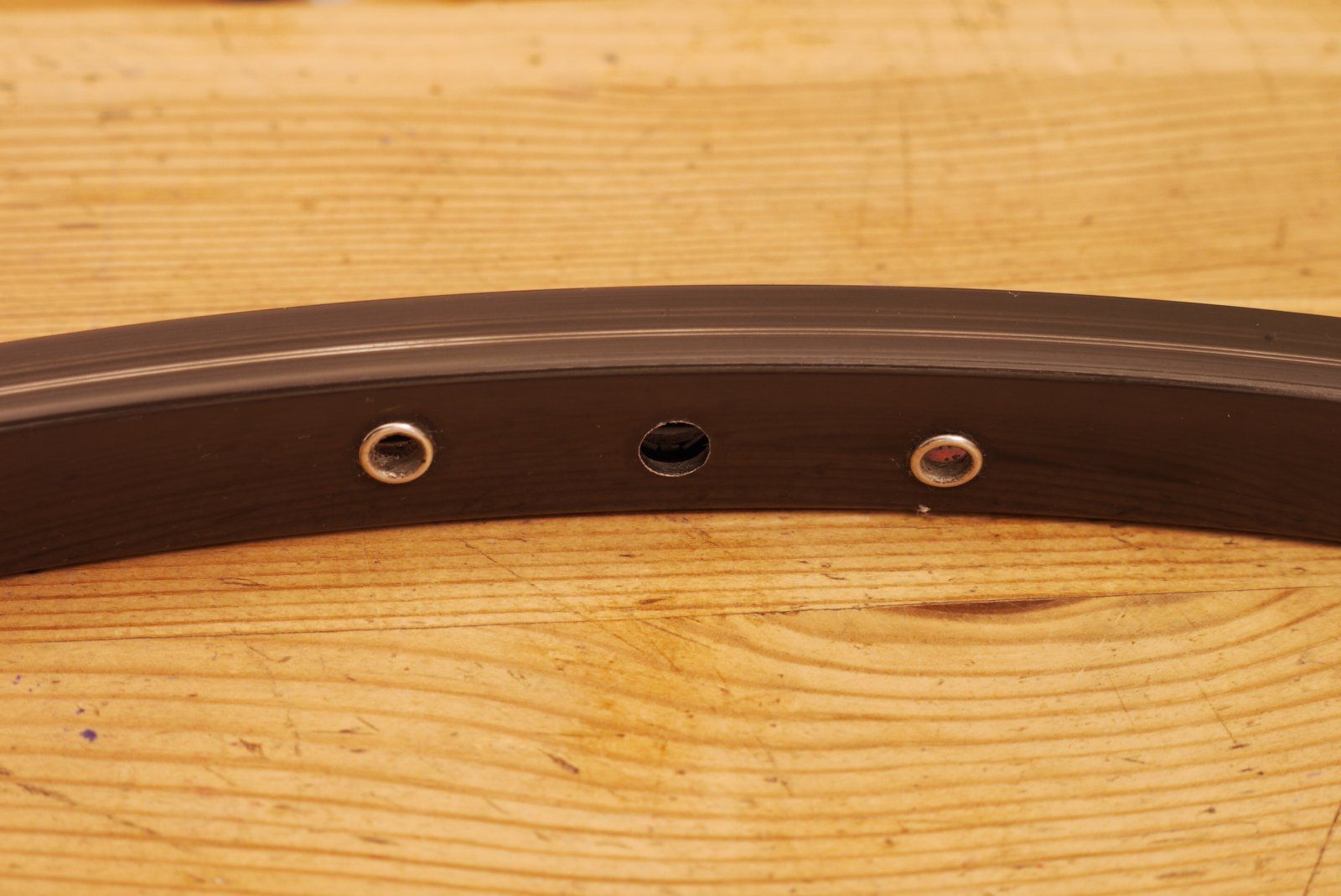 Mavic Monthlery Pro Felge verbaut. Vorne eine Ambrosio Olimpic. Haben ein identisches Profil. Sind beide in gutem Zustand und nur minimal angebremst. Die Speichen sind denke ich verchromt mit ein paar Macken. Der Rundlauf ist gut. Die Speichenspannung würde ich nochmal überarbeiten, wenn ich den LRS fahren wollte.
