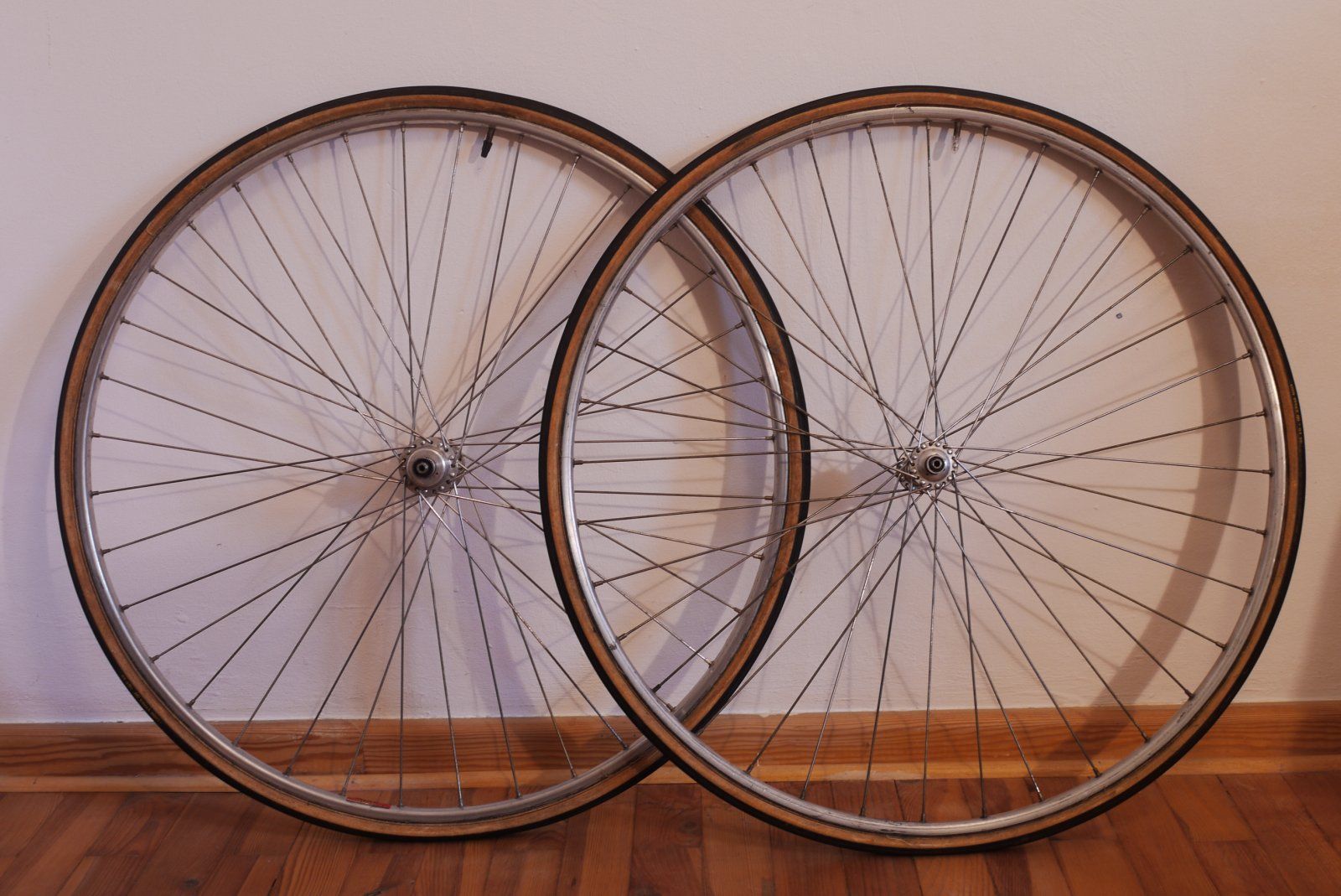 Verkaufe einen Schlauchreifen-Laufradsatz mit alten dreiteiligen Gnutti Naben (50er oder 60er?)