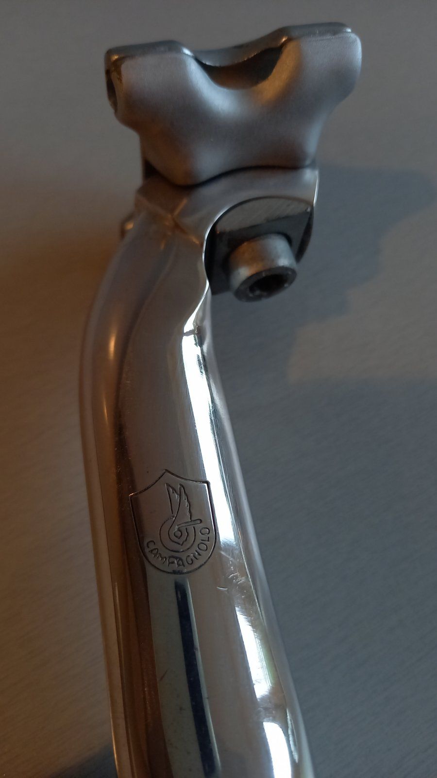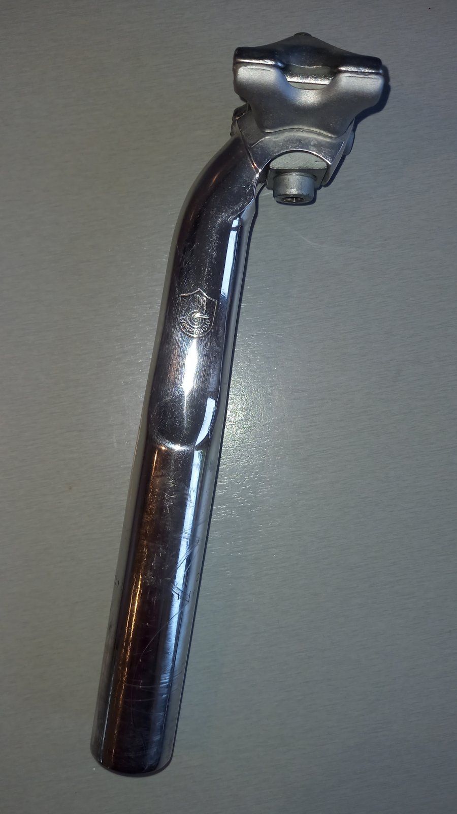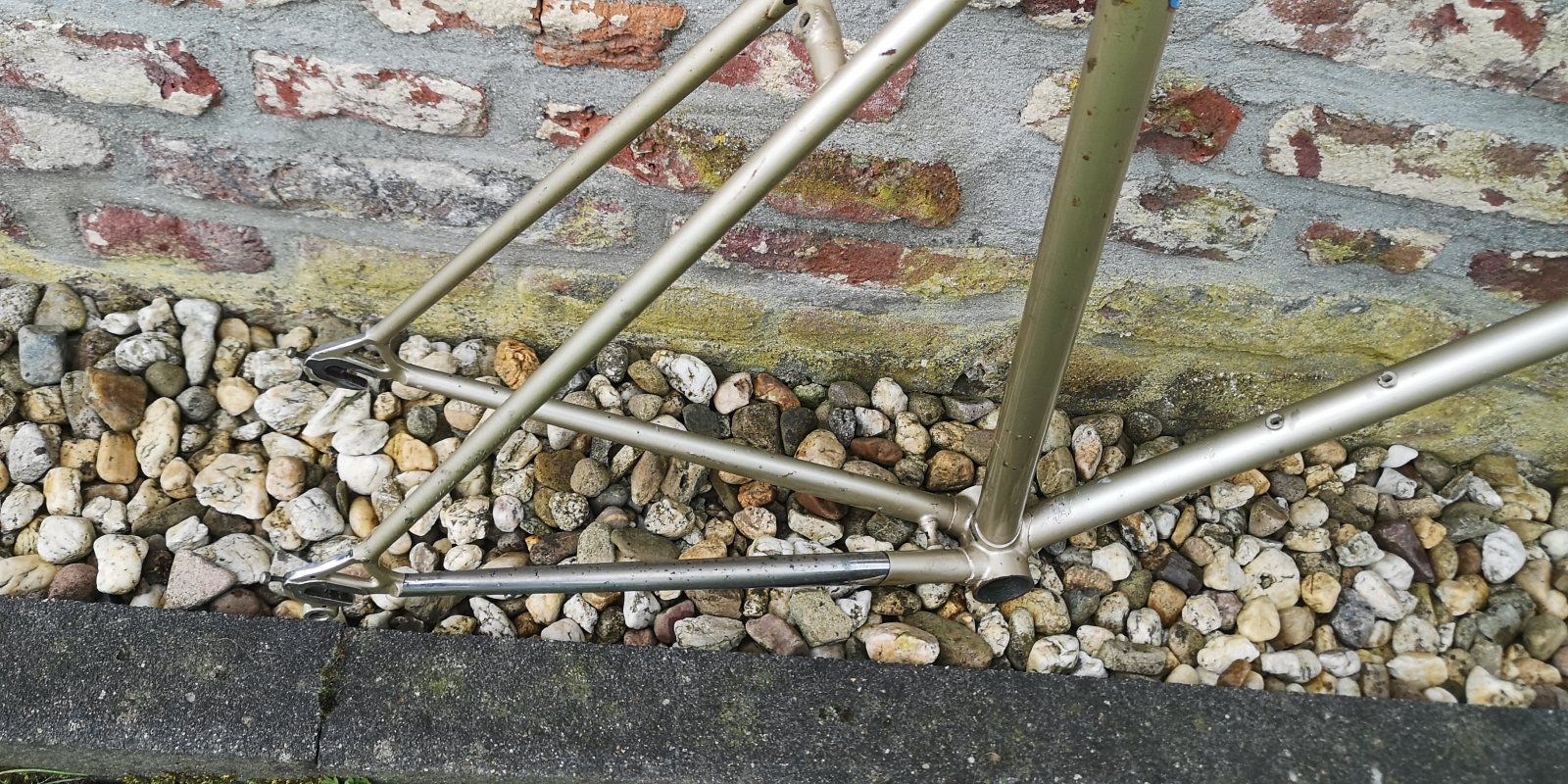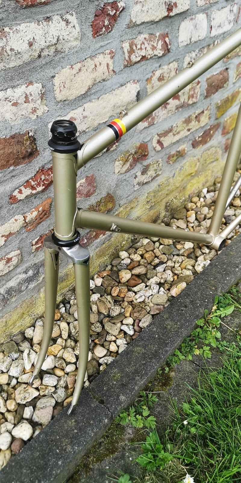 Olmo Rahmen von 1995, Höhe 49cm m-m, Länge 51cm m-m, Gabel Gara, Rahmen mutmaßlich auch. Chrom auf Gabel und Kettenstrebe. EBB 130mm, SaStü 26,8, ITA. Bremszug im Oberrohr zu verlegen. Zustand schön, paar Macken, leider an prominenter Stelle auf dem Oberrohr (letztes Bild!) kein Rost, Chrom gut. Nach Wertermittlung hier im Forum hätte ich gerne 175€ + Versand nach Wahl.