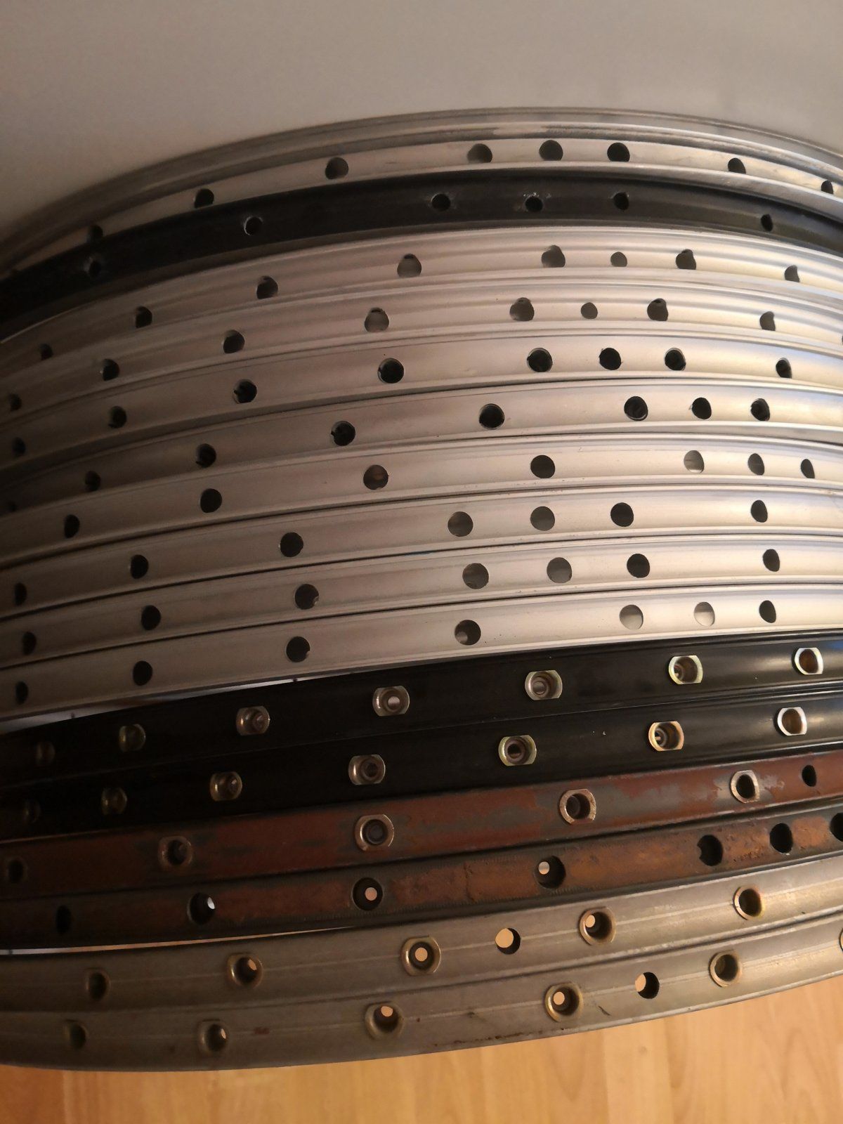 Als Preis sag ich mal 10 Euro pro Stück. Bis auf die zwei Paar Schlauchreifenringe sind alle neu